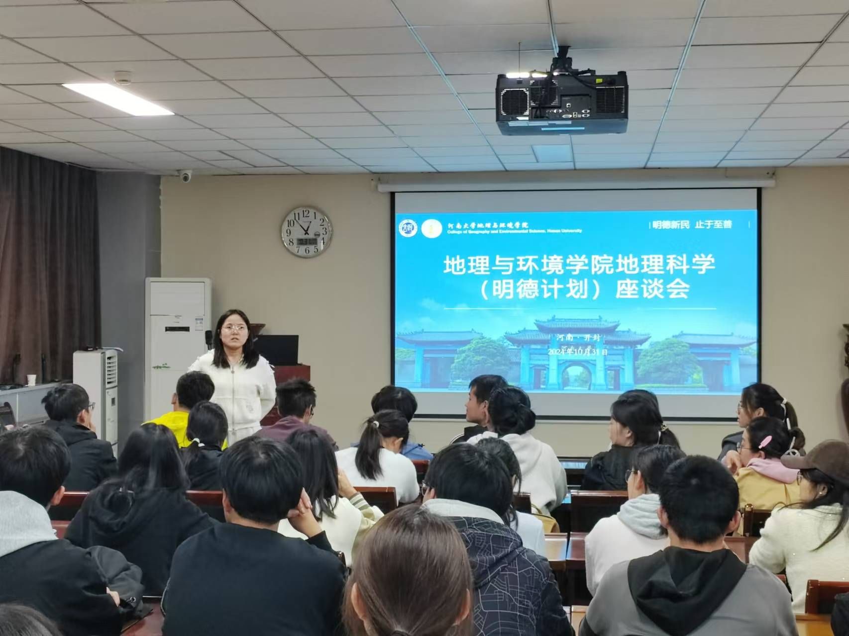 副院长丁志伟,团委书记赵越,2022级、2023级辅导员马利群、屈利铭出席此次座谈会,我院2022级、2023级地理科学(明德计划)班全体学生参与。