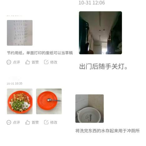 10月26日,线上活动正式开始。活动要求参与者以“勤俭节约”为主题拍摄相关照片或视频进行打卡。我校学生积极参与,从拧紧的水龙头到一盏熄灭的灯泡,从一盘干净无剩的餐盘到写满知识的笔记本,一张张照片、一个个视频都是他们对勤俭节约的直接展现。