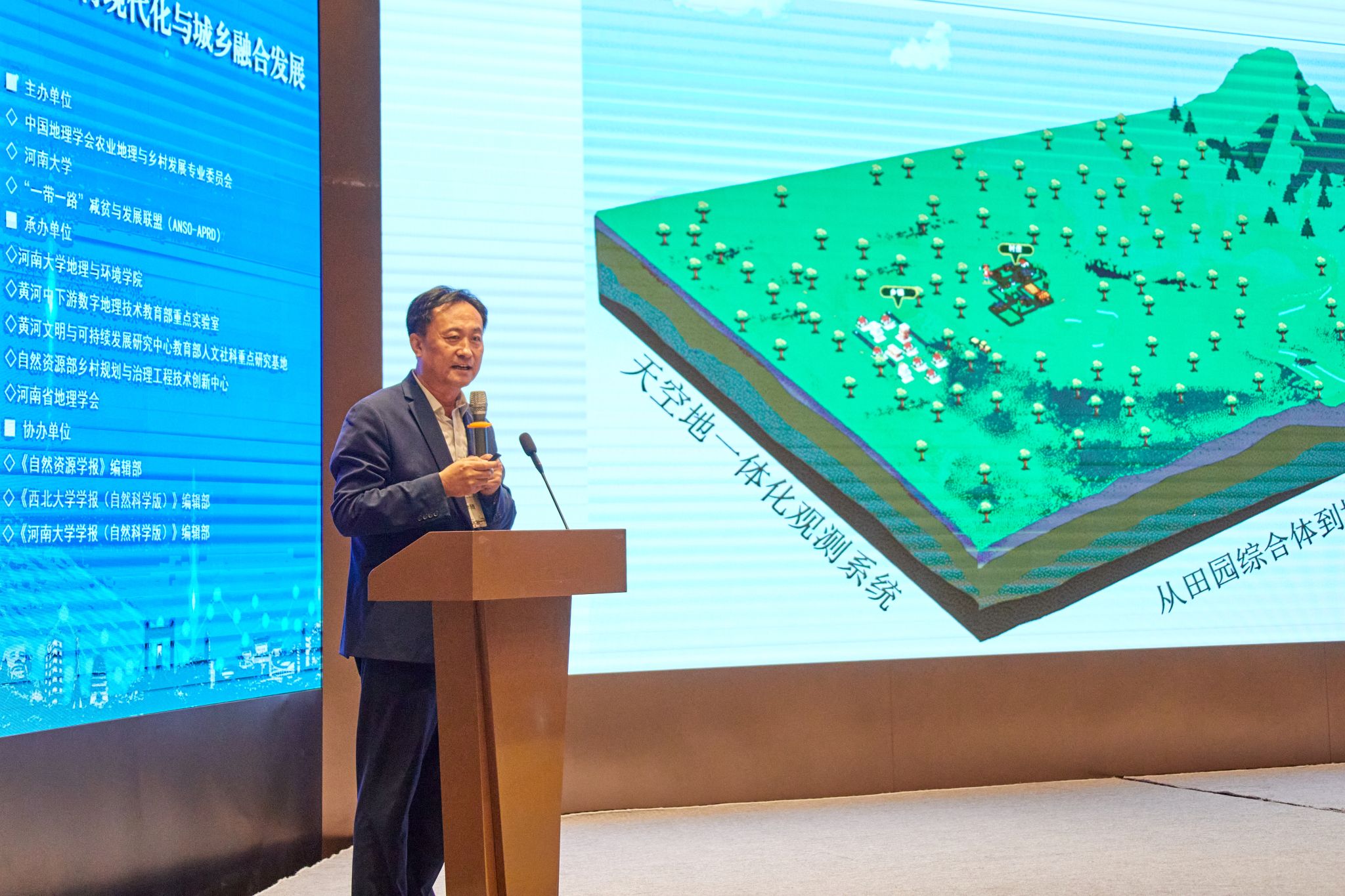 大会主旨报告环节,中国工程院院 士、河南大学王家耀教授,农业农村部中国乡村振兴发展中心主任黄承伟研究员,国家自然科学基金委员会地理科学处项目主任高阳副研究员,发展中国家科球探足球比分