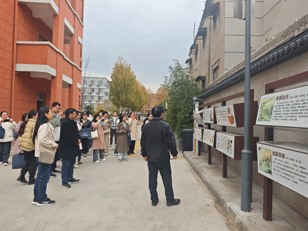 在开封市十四中顺河校区的李国启副校长带领下,广大学员参观了十四中顺河校区的校园,深入感受了学校独特的“雅”文化氛围和教育理念。校园中设有“雅”文化广场、中国传统化走廊、读书角及休闲文化区域,展现出浓厚的文化氛围和独特的教育特色。