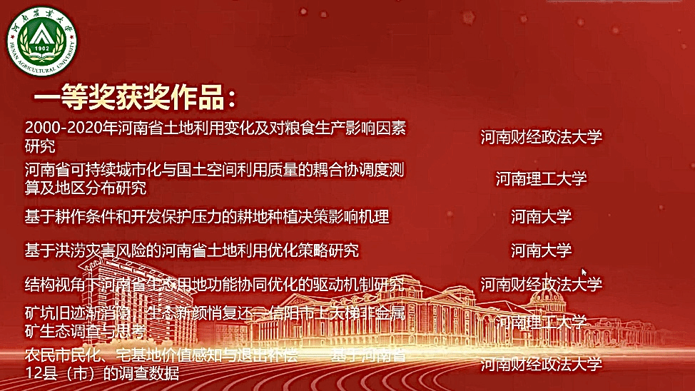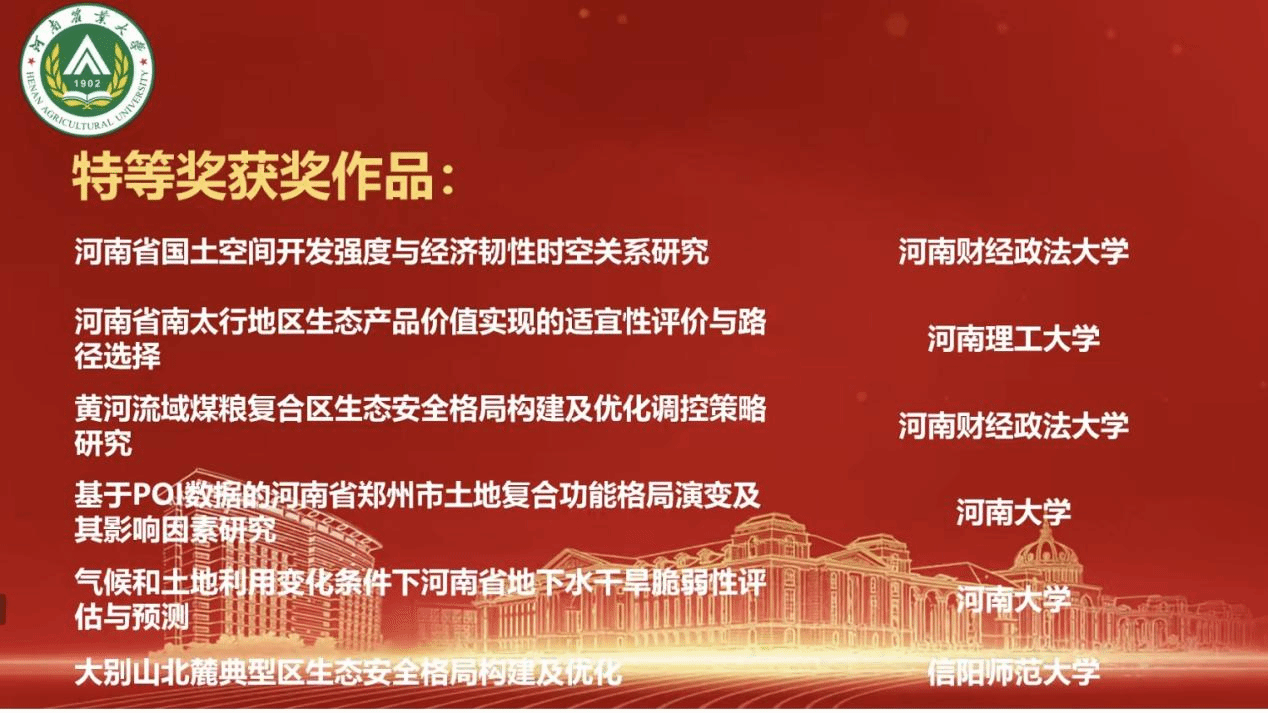 此次大赛中取得的优异成绩,不仅是对我院学生卓越学术水平和创新能力的认可,也是对我院学科建设成就及教育质量的充分肯定,更为推动河南省土地要素配置优化、促进新质生产力发展提供了宝贵的参考和借鉴。