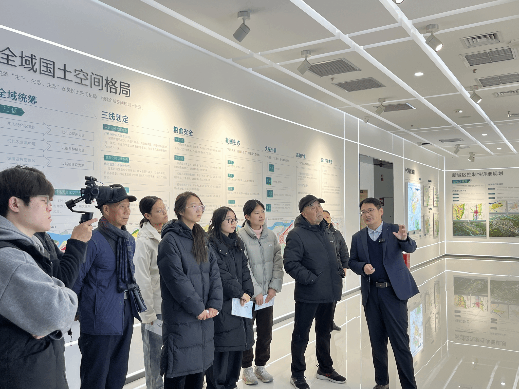 在二层规划展区,市级国土空间总体规划、镇级国土空间规划、综合交通规划、教育医疗等专项规划、城市设计、产业发展规划……一个个详细而务实的规划,让学生们切实感受到了巩义市委市政府带领全市人民凝心聚力,加快建设社会主义现代化标杆城市的决心和信心。在全域国土空间规划展区,丁志伟结合国土空间规划核心内容,详细阐述了巩义市全域统筹、三线划定、粮食安全、美丽生态、大城小镇、高效产业、国土综合整治等内容,为学生们带来了一场别开生面的现场教学。在乡村振兴展区,丁志伟就巩义市村庄分类和布局规划进行了详细讲解,不仅让学生们了解了丰富的城市规划知识,还深刻认识到自己作为城市一员的责任和使命。