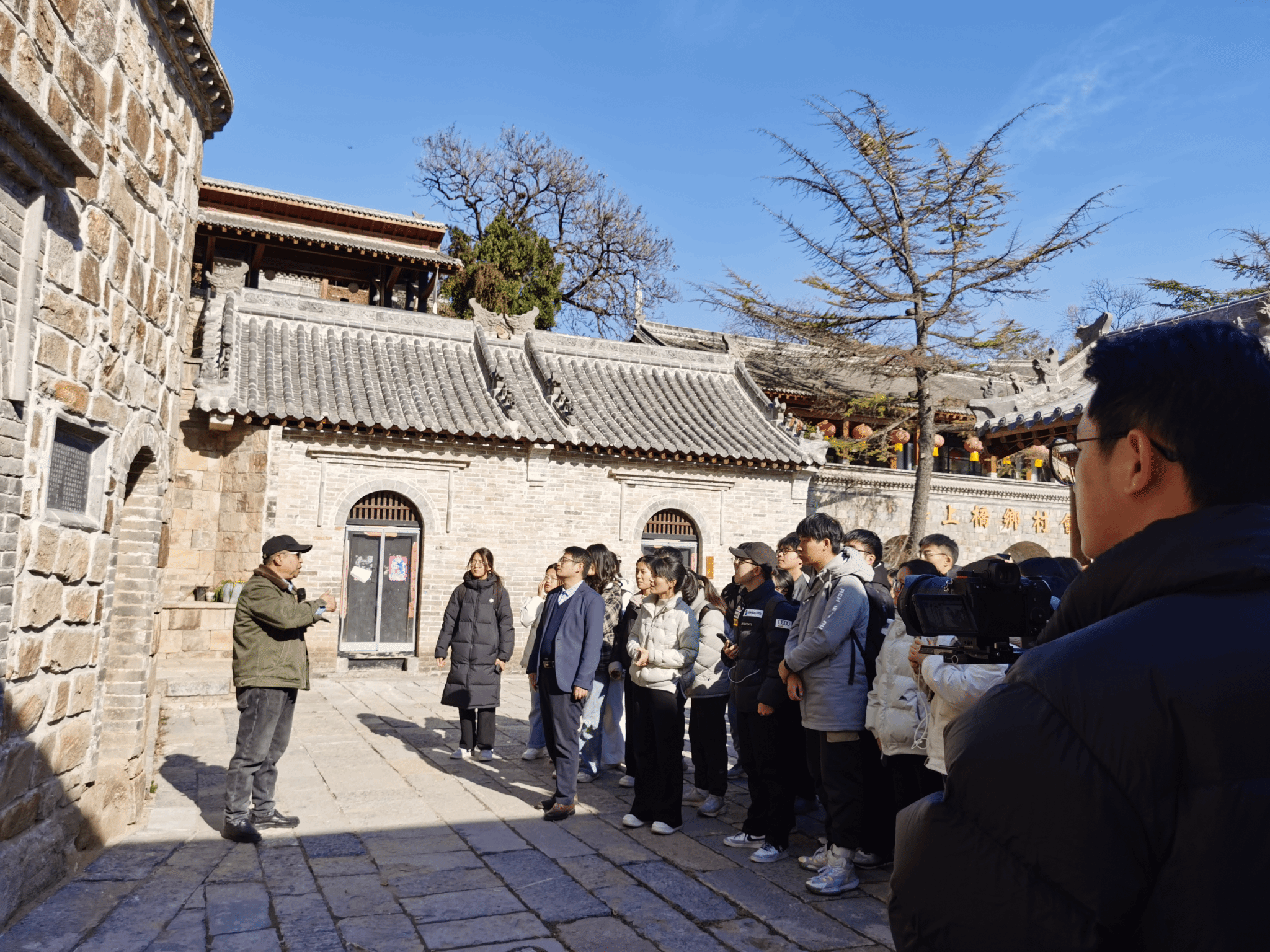 第二站来到了中国传统村落海上桥村,体验中原古村落的文化氛围。走进海上桥村,最先映入眼帘的是民居古建的层层布局。沿着山势而建的房屋错落有致,青砖灰瓦间点缀着红漆木门,四周小道纵横交错,阡陌之间,青石板路延伸至远方。著名教育家王广亚故居、乡村艺术大学等文化景点点缀其间,风景清幽。其中,村中的王广亚故居不仅保存完好,还蕴含着丰富的文化价值及教育家精神;此外,院落四周廊高雕花木窗精美绝伦,屋内陈设古朴,书案、屏风与挂画皆保留了清代生活的原貌。乡村艺术大学艺术家们共同完成的彩绘墙,也有简单却充满巧思的雕塑。在这里,学生们领略到了古村落的建筑风格与自然环境的巧妙融合,也切实感受到了古村落的历史文化气息。