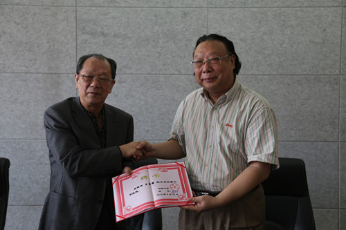 刘先省介绍了王家耀院士的基本情况。赵国祥代表学校与王家耀院士签订协议并为他颁发聘书。