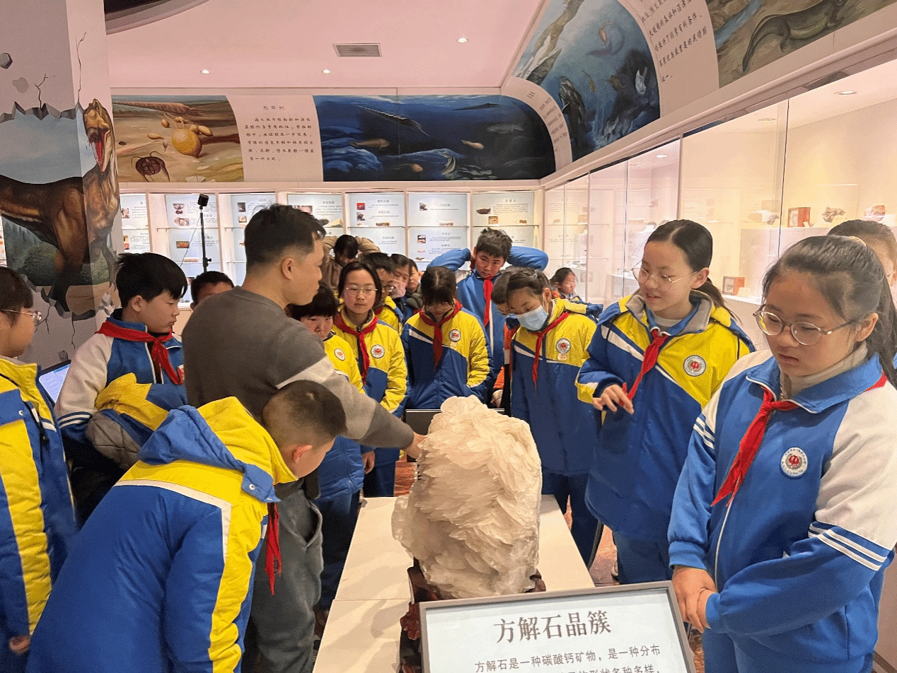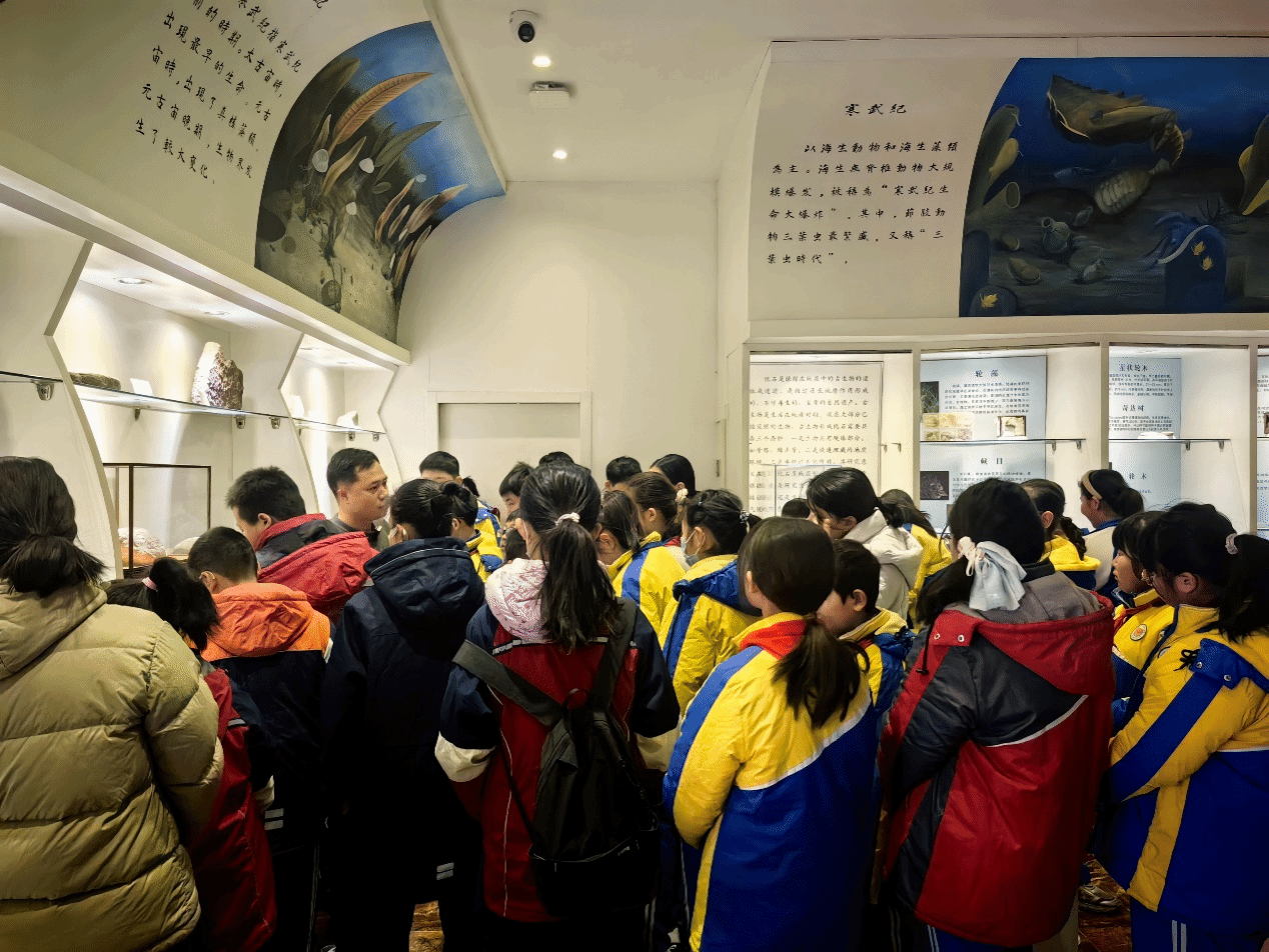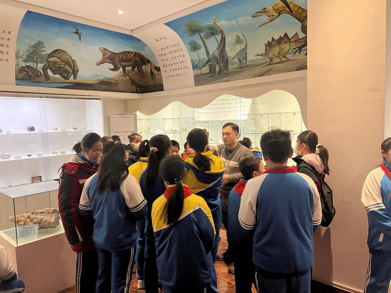 东英自然博物馆,该博物馆是中国科学技术协会在河南省高校唯一设立的全国科普教育基地的重要组成部分,馆内所陈列标本不仅种类丰富,而且典型珍贵者甚多。陈英勇老师为师生们细致讲解了博物馆内的岩石、古生物化石等各类展品,并与同学们积极互动,极大激发了孩子们对地质知识的浓厚兴趣和探索热情。