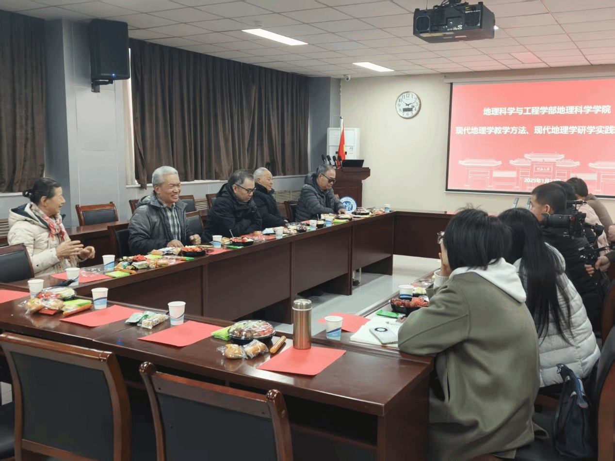 副院长丁志伟主持。本次会议包括三项议程,分别是2025年离退休工作新春座谈会、百年地学139工程《现代地理学教学方法》《现代地理学研学实践》教师座谈会以及区域与城市科学系党支部座谈会。