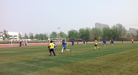在金明校区志义体育场激情开战。我院队员们显示出明显高人一筹的球技,频频上演精彩的盘带、传射,他们充分展现出我院学子的激情与活力,拼搏与向上。但无奈运气不佳,最终我院以0:1失利,但是虽败犹荣,永不言败是我院球队的信念,拼搏进取是他们的口号。