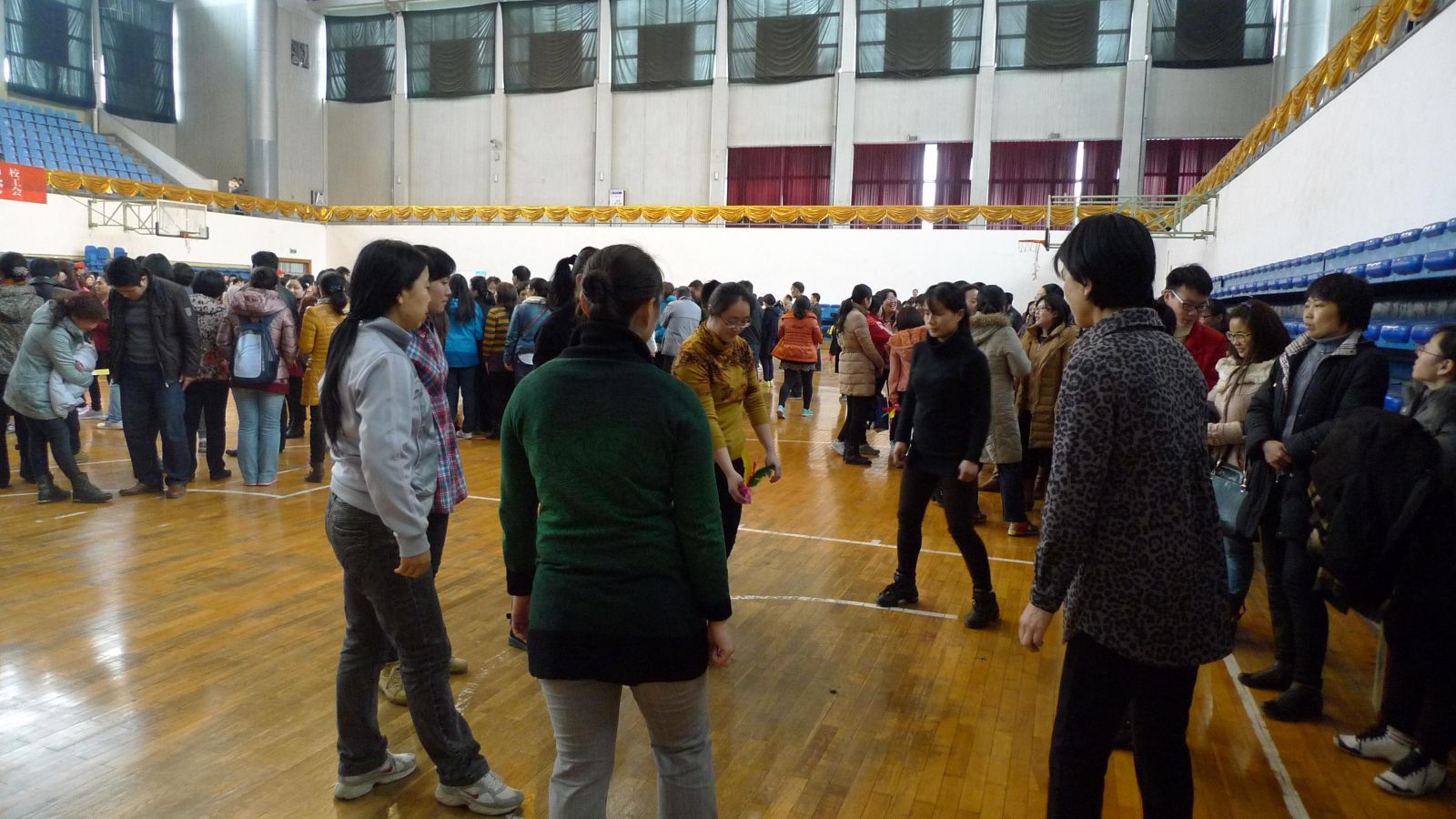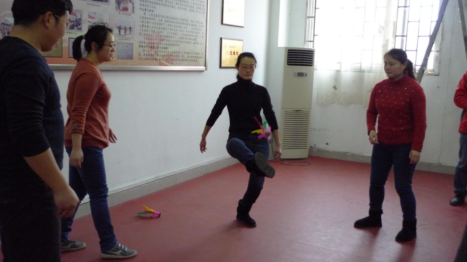 篮球馆举行的拥抱春天毽身无限女教职工毽球比赛。