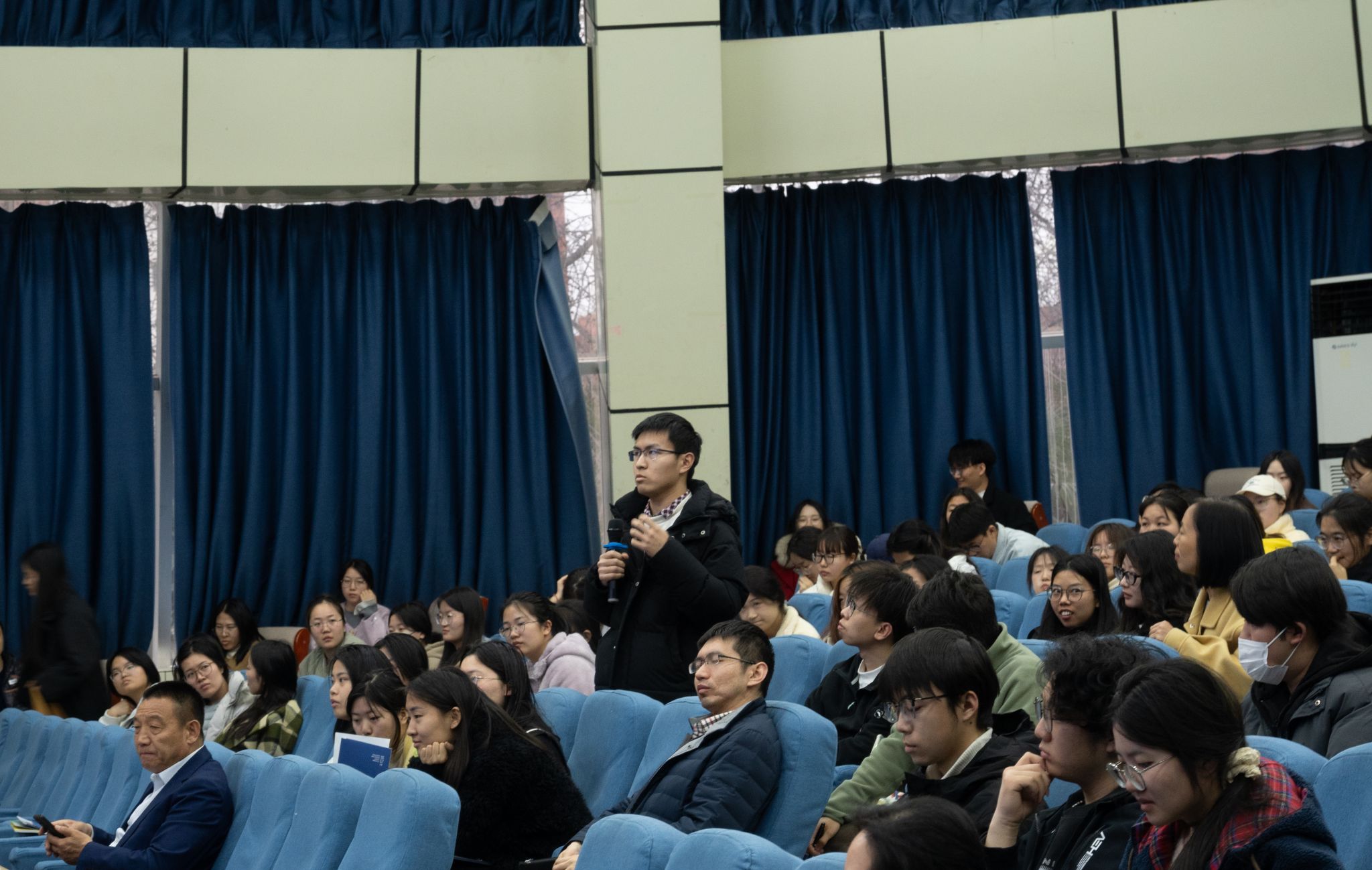 孔海江以“关注极端天气,应对气候变化”为题作专题报告。报告从极端天气气候事件定义、气候科学基本知识、为什么要了解气候变化、极端天气和气候变化、预测气候变化的影响、气候变化与日常生活六个方面展开。报告中,孔海江通过分享多个气候变化方面的研究案例,丰富了与会人员对气候变化历史维度的认知,也凸显了其对人类社会多方面的深远影响。针对当前气候变化的严峻形势,孔海江表示社会各界应共同行动起来,将应对气候变化和极端天气作为每个人的责任。无论是政府部门、企业还是个人,都应在各自的领域内积极采取措施,加强合作,共同构建抵御气候风险的坚固防线,为实现经济社会发展与生态环境保护的良性互动而努力。报告结束后,现场学生踊跃提问,与孔海江积极互动,深入探讨。