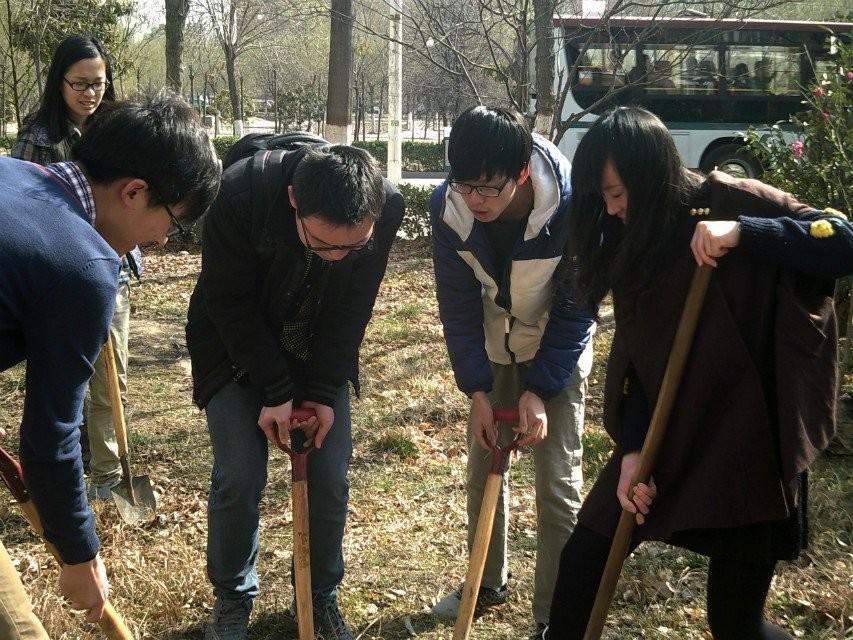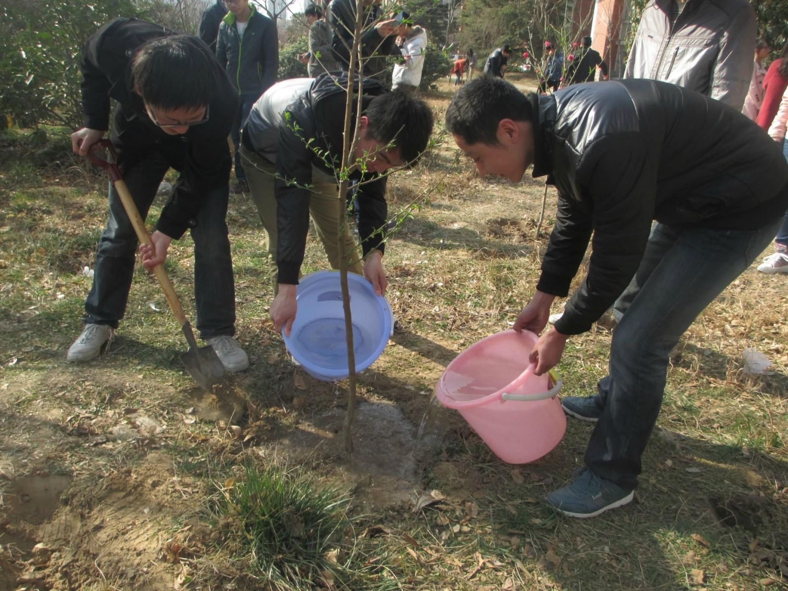 团委副书记宋永鹏和2011级辅导员元媛老师的带领下,同学们开展了植树活动。大家热情高涨,分工合作,挖土、植树、浇水,一项项工作伴随着同学们的欢声笑语有条不紊的进行着。植树过程中,元媛老师对我们的活动给予了高度评价,认为此项活动是一项极其有意义的活动,美化了校园,提高了大家的动手能力,且具有一定的纪念意义。此次活动也引起了热烈反响,吸引了不少路人驻足观看,还有同学主动前来帮忙。最后大家进行了后期管理工作的分配,并合影留念。