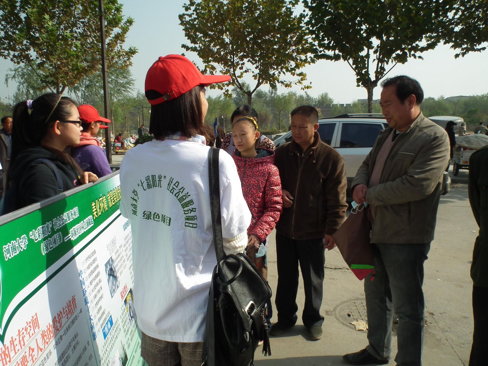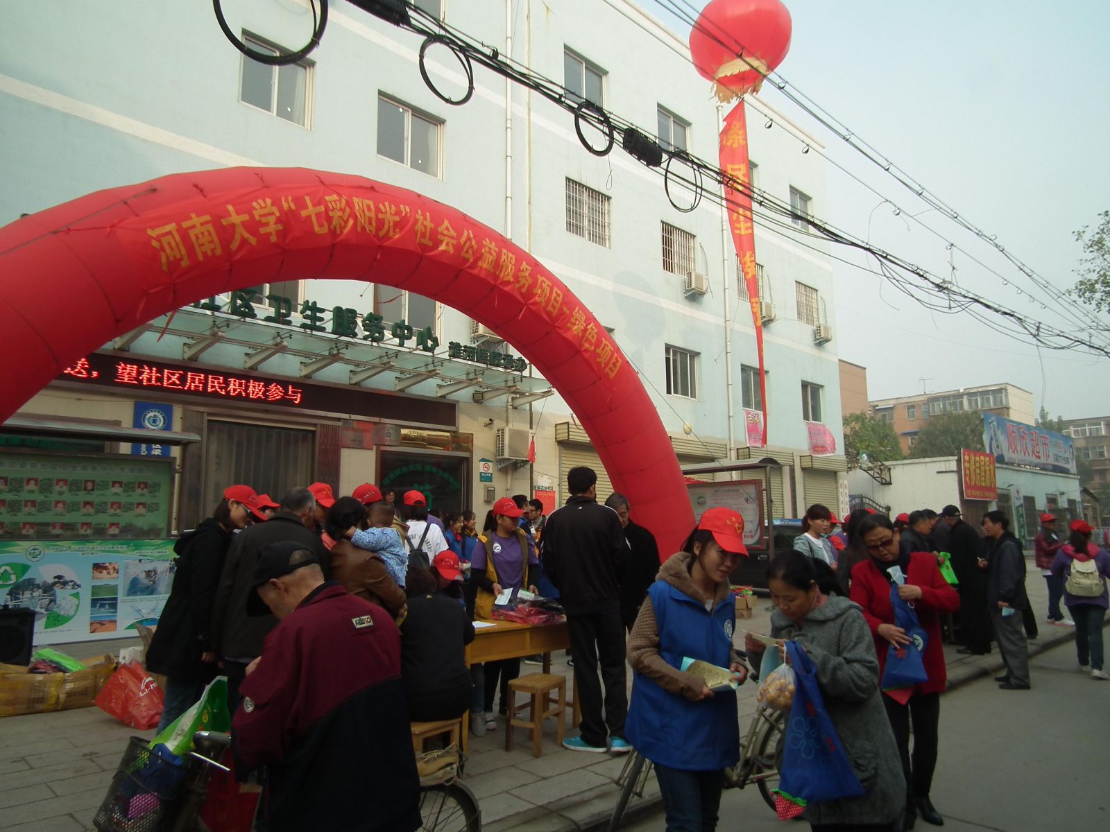 团委在社区居委会的支持下,以公益社区、志愿服务为宗旨,以宣传册、环保专题讲座、宣传展板、专业仪器检测等形式,使市民对白色污染及PM2.5有了更全面的了解,认识到环境对健康多么的重要,之后志愿者发放环保手袋、口罩,并与河南大学淮河医院携手对社区居民进行免费的健康检测,在社区居民中反响强烈。
