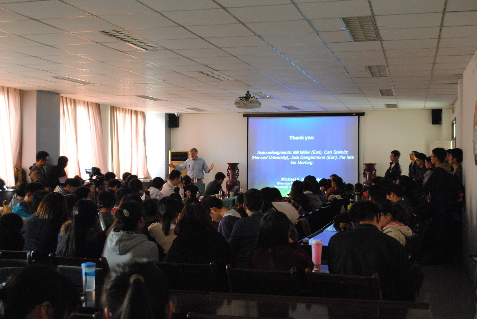 GIS作为一门在我国起步稍晚但发展迅速的学科已在当今社会的方方面面占据了重要位置。此次Michael F. Goodchild、蔡晓兵等人的一行为我校的学术活动又注入了新鲜的血液,同时也让到场的同学尤其是我院GIS专业的学生受益匪浅,对自己的专业有了更深刻全面的认识。