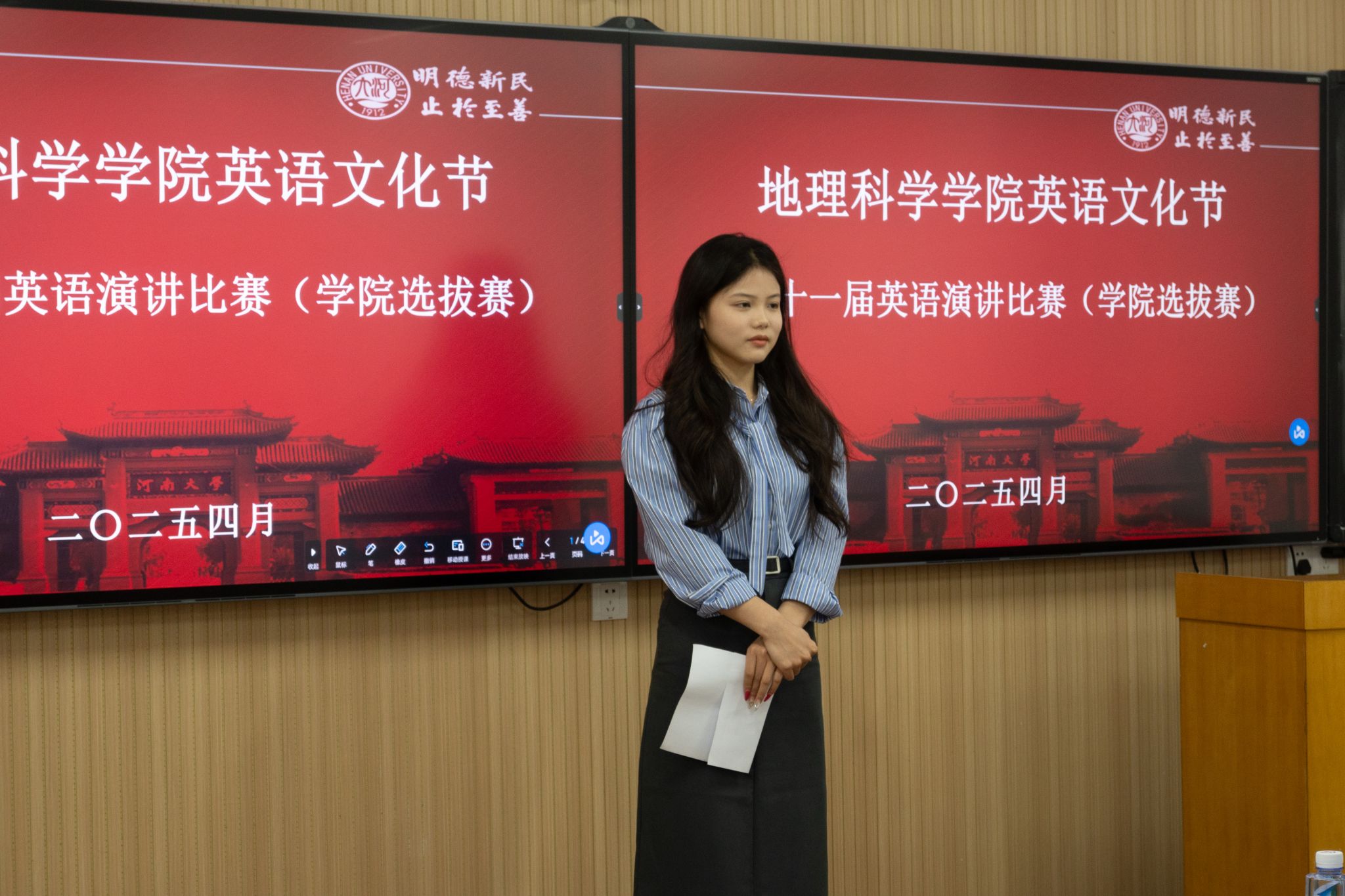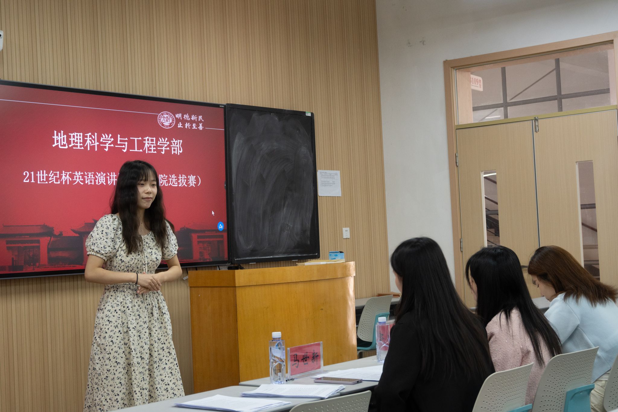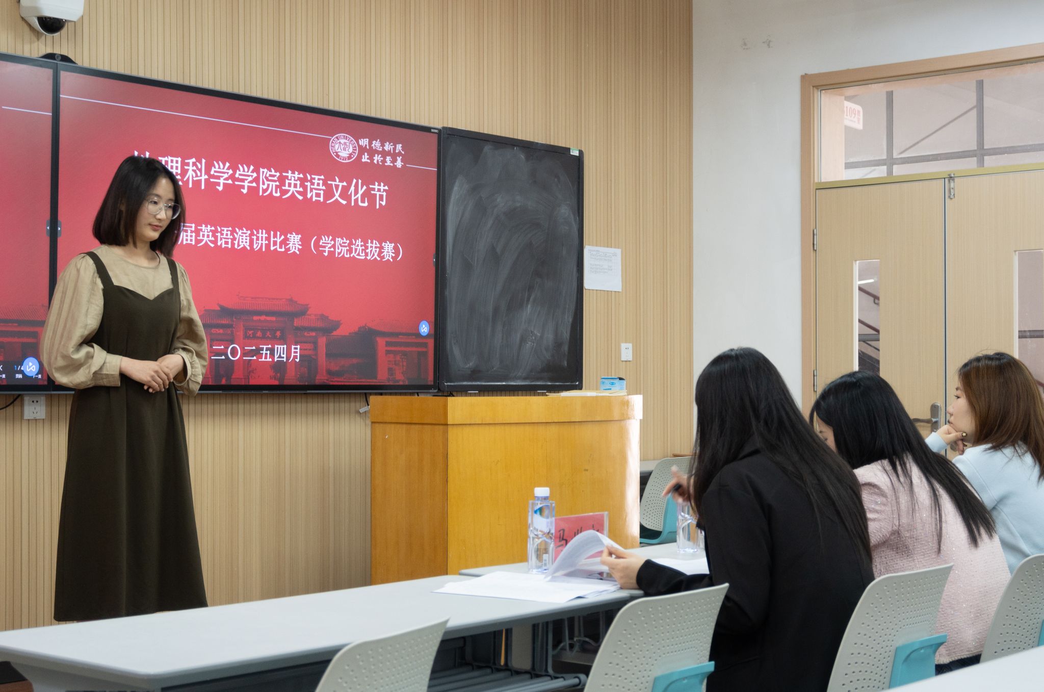 研究生马世新、王海霞、李佳欣担任评委,我院2024级本科生赵雨梦主持。