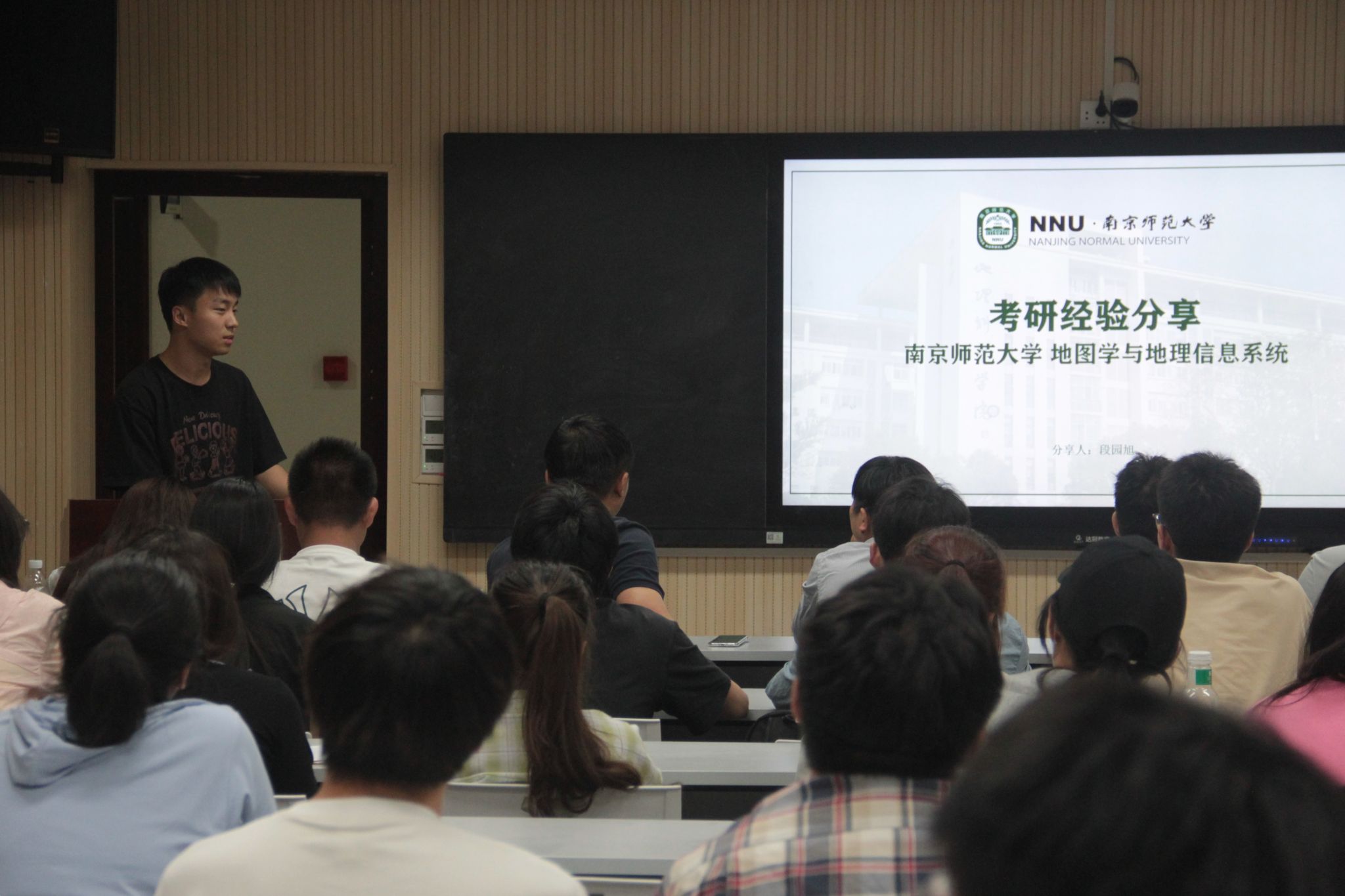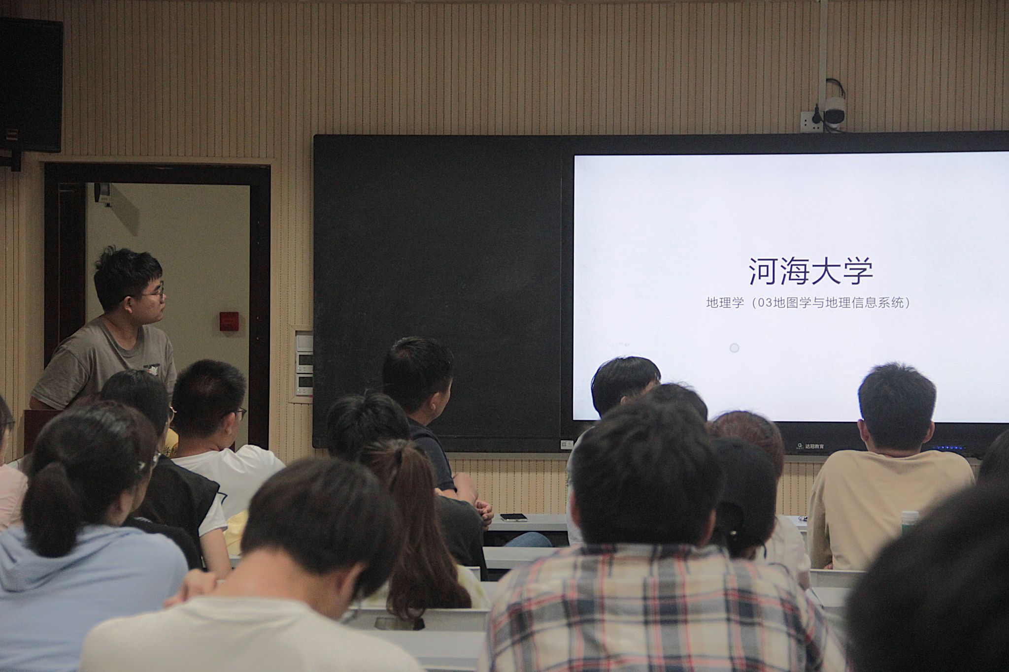 2021级本科生汝昱彤、曹紫帆、李亚鹏、韩冰、常要来、杜浩然、段园旭作为学生代表围绕保研和考研话题进行交流分享,2022级地理信息科学专业学生参会学习。