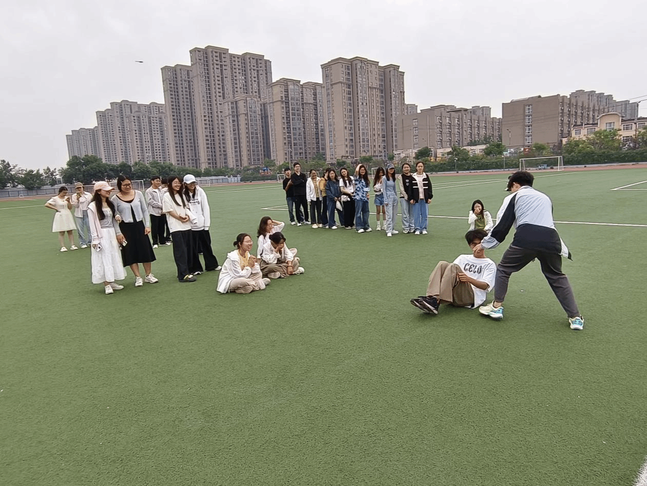 活动首先迎来了充满童趣的“丢手绢”环节。学生们围坐成圈,在欢快的背景音乐中,你追我赶,笑声不断。每当手绢悄悄落在身后,紧张与惊喜交织,奔跑的身影洋溢着青春的活力。