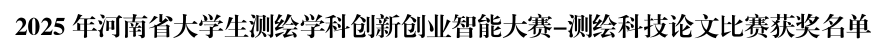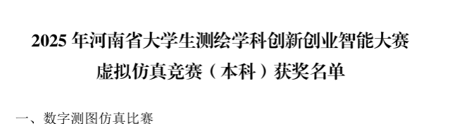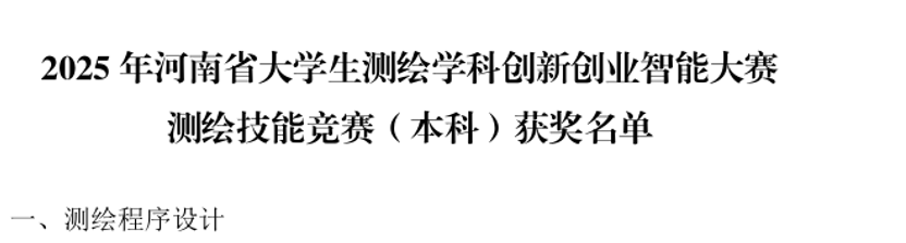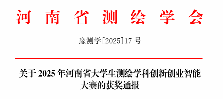 河南省大学生测绘学科创新创业智能大赛是河南省大学生测绘科技创新的最高级别赛事,是检验学生测绘地理信息基础知识水平和实践能力,推动高校实践教学经验与成果交流的重要平台。通过虚拟仿真、程序设计、科技论文等多元化竞赛形式,学生不仅在技能层面得到了全面锻炼,更在科研思维和团队协作方面实现了飞跃式成长。此次获奖不仅彰显了我部学生卓越的创新能力和实践操作能力,更印证了测绘工程系长期注重专业基础、实践能力与创新思维协同发展的显著成效,凸显了其培养高水平、复合型测绘人才的办学成果。