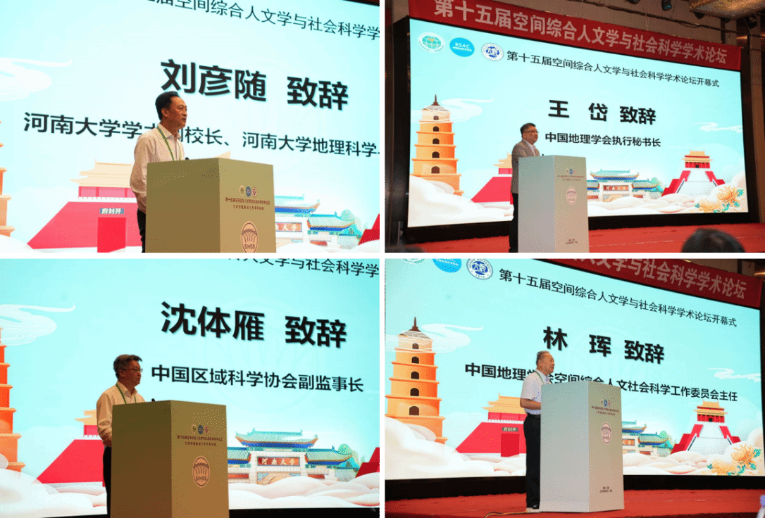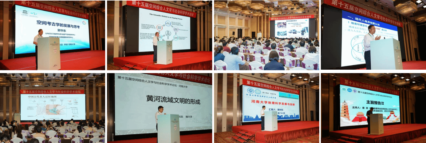 主旨报告环节,10位知名专家学者分享了精彩的大会主旨报告。郭华东院士做了题为《空间考古学的发展与思考》的主题演讲,系统阐述了空间考古学从技术方法到学科建设的跨越式发展;StewartFotheringham院士做了题为《DoAcademicsStillNeed toThink? ASpatialAnalytical Perspective》的报告,分享了其在人工智能在空间数据分析应用中的若干问题的思考;林珲院士做了题为《地图语言的发展与文化计算》的报告,阐述了地图语言对推动历史地理数字化、情感空间分析及虚拟文化场景重建的重要价值;刘彦随院士做了题为《现代人地系统科学与工程融合》的报告,提出地理科学与工程融合的“科学-技术-工程-实践”体系,为全球可持续发展目标提供人地协调的中国方案。北京大学智能研究院袁晓如研究员的《解构与再织:历史数据的时空知识重构与可视化》报告,阐释了数据可视化如何解析历史变迁、文献流传及文化影响。河南省文物考古研究院副院长魏兴涛研究员的《黄河流域文明的形成》报告详细阐述了黄河流域从新石器时代早期到二里头文化时期王朝建立的文明连续发展进程。苗长虹教授的《河南大学地理科学发展与创新》汇报指出,学部构建了‘三大领域六大方向’的特色体系,实施‘123计划’和实施本硕博一体化改革等措施,努力构建综合性、交叉型、工程化的地理学一流学科。中国科球探足球比分