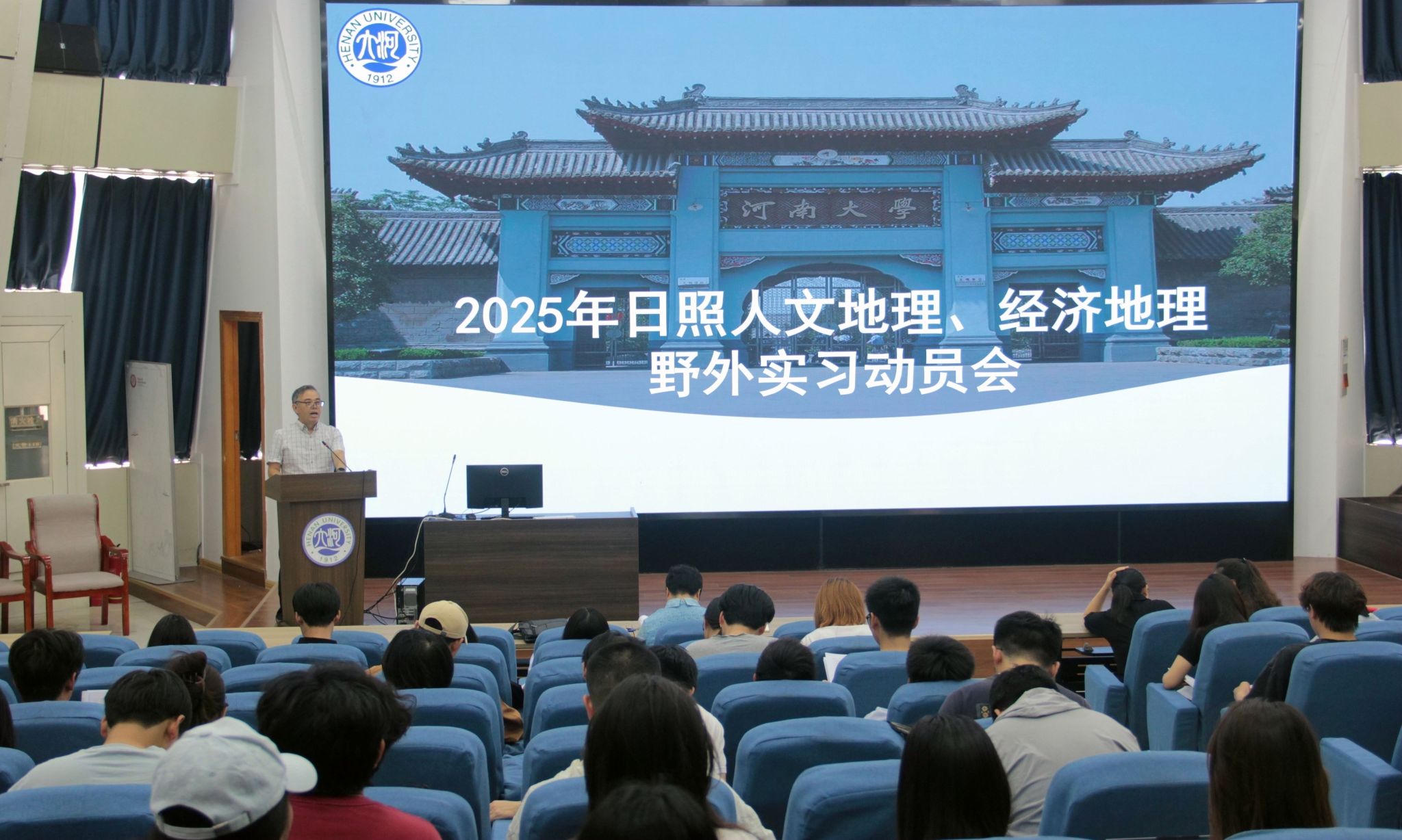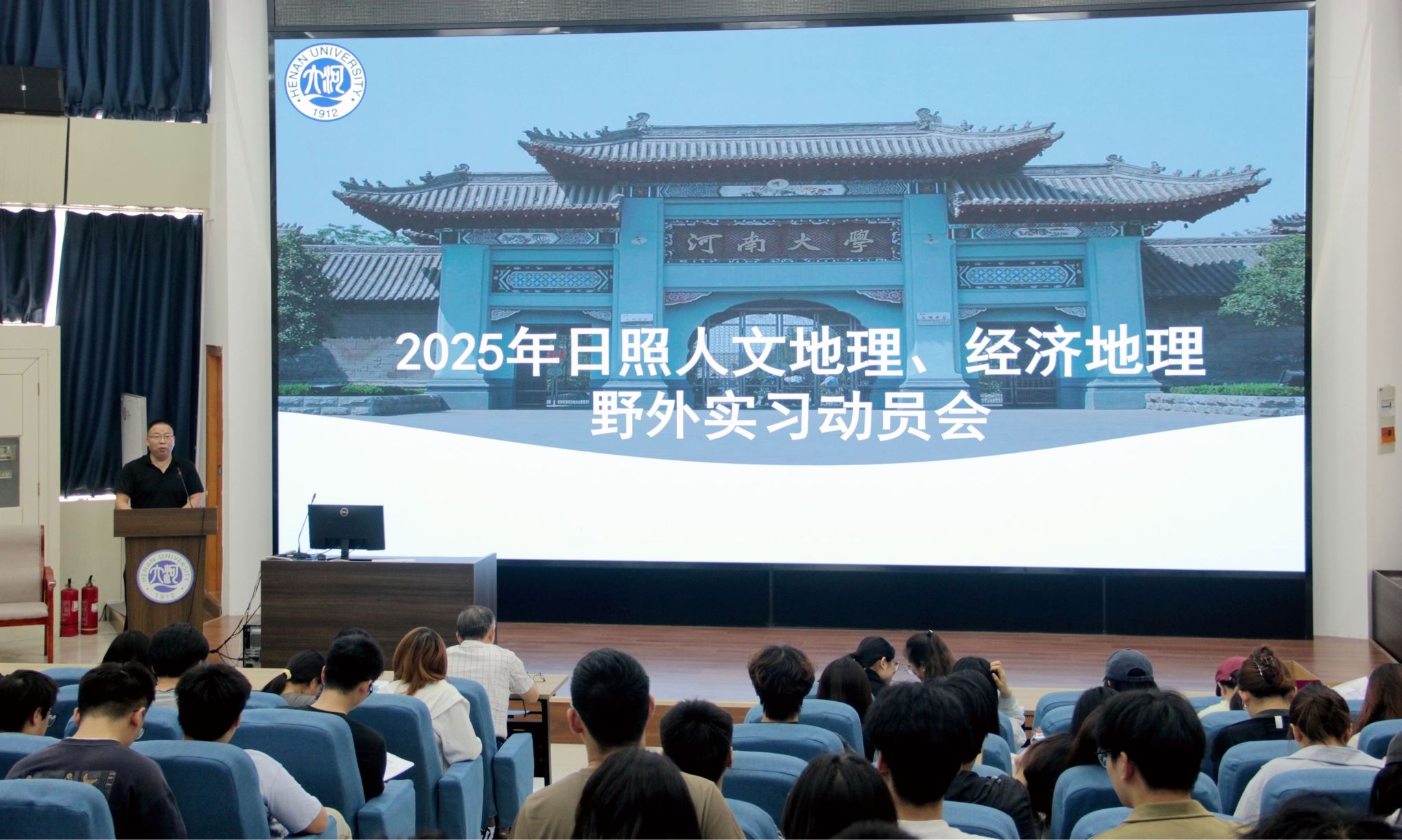 为保障我部2025年日照人文地理、经济地理野外实习工作的顺利开展,确保实习教学质量,提升学生的专业实践能力,6月24日上午,我部于金明校区景兰报告厅召开2025年日照人文地理、经济地理实习动员会。实习队指导老师秦明周、时振钦、吴娜琳、张洵赫、屈利铭等出席会议,2022级、2023级参加实习的200余名本科生参与会议。本次动员大会由实习队指导老师别乾龙主持。
