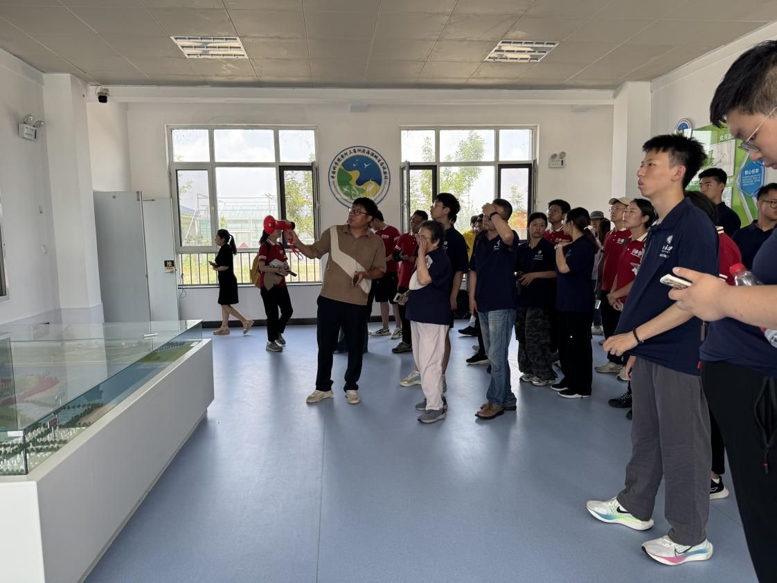黄河三角洲滨海湿地生态试验站。作为支撑黄河流域生态保护与高质量发展的重要科研基地,该试验站长期致力于滨海湿地生态系统研究、生物多样性保护及生态修复技术研发,为区域可持续发展提供科技支撑。参观过程中,试验站科研人员向队员们详细介绍了湿地生态监测网络建设、盐碱地改良技术创新以及珍稀鸟类栖息地保护等领域的科研成果。此次参观让实习队成员更加深入地了解了黄河三角洲湿地的核心生态价值,以及科研团队在应对气候变化挑战、维护区域生态平衡方面所进行的创新探索与实践。