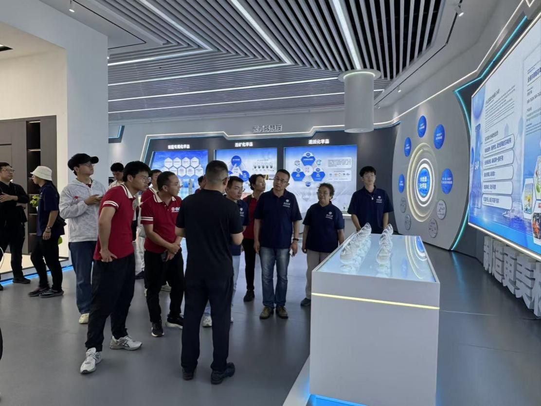 今天实习的最后一站是蓝湾新材料有限公司。通过实物展示、动态模型和数字化展板,实习队深入了解了该企业如何利用自主研发的催化裂解技术,将炼化副产品转化为可降解塑料、环保涂料等高端新材料产品。企业独创的“废酸再生系统”尤为引人注目,该系统实现了危险废物的资源化循环利用,其技术指标达到国际领先水平。此次参观让实习队成员深刻认识到,在“双碳”目标引领下,传统化工企业通过技术创新完全能够实现经济效益与生态效益的双赢,为黄河流域产业高质量发展提供了可借鉴的转型路径。