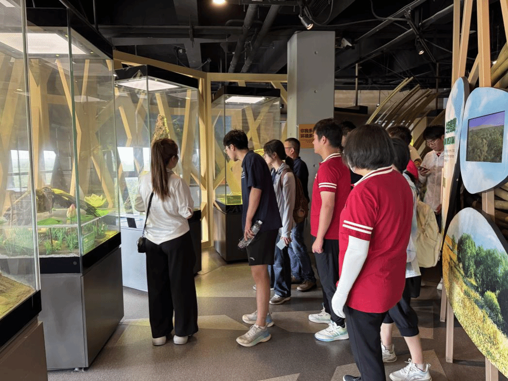 6月30日上午,黄河流域自然地理综合实习队赴东营市黄河三角洲鸟类博物馆开展实践学习。该博物馆位于山东省东营市黄河三角洲国家级自然保护区内,展览面积达三千余平方米,是目前全国规模最大的鸟类专题博物馆。馆内设有“大河息壤—共生厅”、“候鸟驿站—共鸣厅”等多个主题展厅,系统展示陈列了1400余件动植物标本,其中包括国家一级保护鸟类12种和国家二级保护鸟类51种。作为展示黄河流域生态保护成果的重要窗口,博物馆通过丰富的标本、影像资料及互动展陈,生动呈现了黄河入海口湿地生态系统的独特性和鸟类资源的多样性。此次参观学习使实习队成员对黄河三角洲的生态价值与保护意义有了更直观的认识,进一步深化了对黄河流域生物多样性保护重要性的理解。