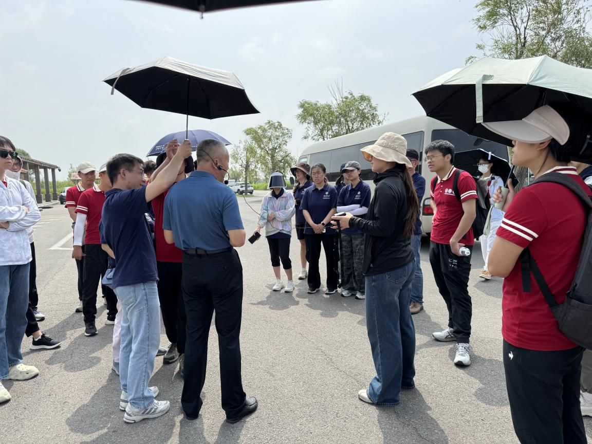随后,实习队伍在黄河入海口进行了实地考察。负责人重点介绍了黄河湿地鸟类救助与繁育工作进展。在站区工作人员的共同努力下,濒危野生鸟类种群数量显著恢复,生物多样性水平得到有效提升。负责人同时详细讲解了1996年实施的黄河人工改道工程。该工程通过人工开挖引河、疏浚导流等措施,优化了河口水流形态,体现了“因势利导、主动调控”的治黄新思路,为21世纪黄河三角洲的生态保护与可持续发展奠定了重要基础。通过实地考察与讲解,队员们深入了解了黄河三角洲湿地的形成过程及其关键生态功能,深刻体会到这片新生湿地对于保障候鸟迁徙通道和维护生物多样性的核心价值。