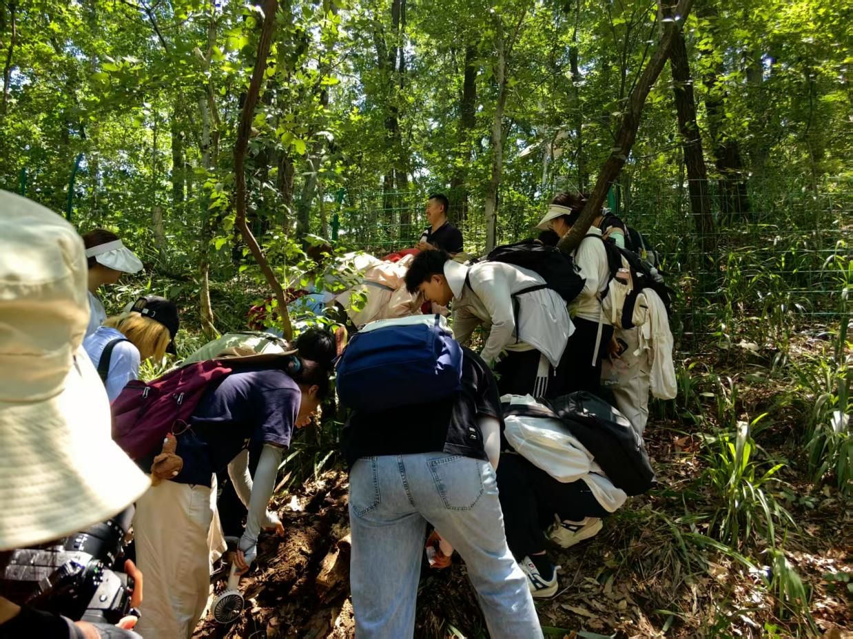 7月1日,实习队转场至大别山国家站鸡公山站点,重点考察区域的地质地貌、水文、植被与气象等自然要素。在老师们的介绍下,学生们深入参观了国家站进行“水土气生”长期定位监测的场地及各项设施,并且围绕林冠氮沉降和増雨野外控制实验平台从研究目的意义、实验设计、野外采样方法等方面进行学习和实践。不仅使学生们了解了长期定位观测和科学研究的重要性,并且进一步激发了学生参与科研与探索自然的兴趣。