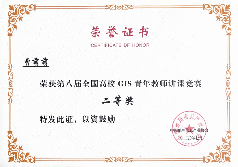 本届竞赛吸引了来自武汉大学、国防科技大学、南京信息工程大学等 88 所高校的青年教师同台竞技。赛事采用分组预赛与集中决赛相结合的严谨形式,通过多轮专业评审与激烈角逐,全方位考察参赛教师的教学理念、教学设计与课堂呈现能力。我部地理信息科学系教师曹萌萌凭借以学生为中心的创新教学理念和生动高效的教学模式在此次比赛中荣获二等奖。