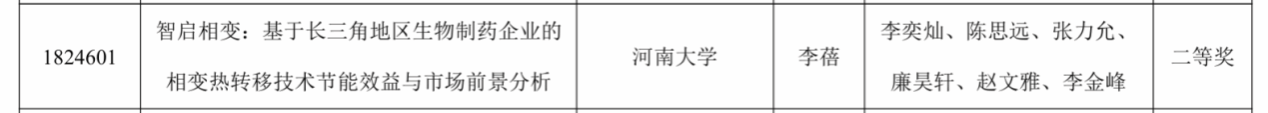 团队凭借《智启相变:基于长三角地区生物制药企业的相变热转移技术节能效益与市场前景分析》项目,历经院赛、校赛、国赛三重多轮专业评审与激烈角逐,最终斩获国家级二等奖。