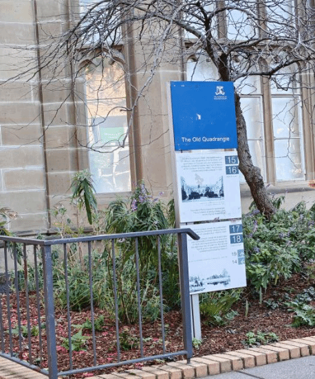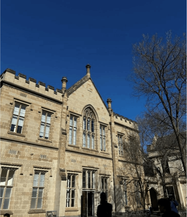 随后,实习队参观了具有百年历史的Old quadrangie大楼。这座维多利亚风格建筑是墨尔本大学最具代表性的教学空间之一,其庄重典雅的外观展现了学校早期建筑风格与学术传统。行程最后,团队走访了1888楼研究生院,进一步感受校园文化氛围。