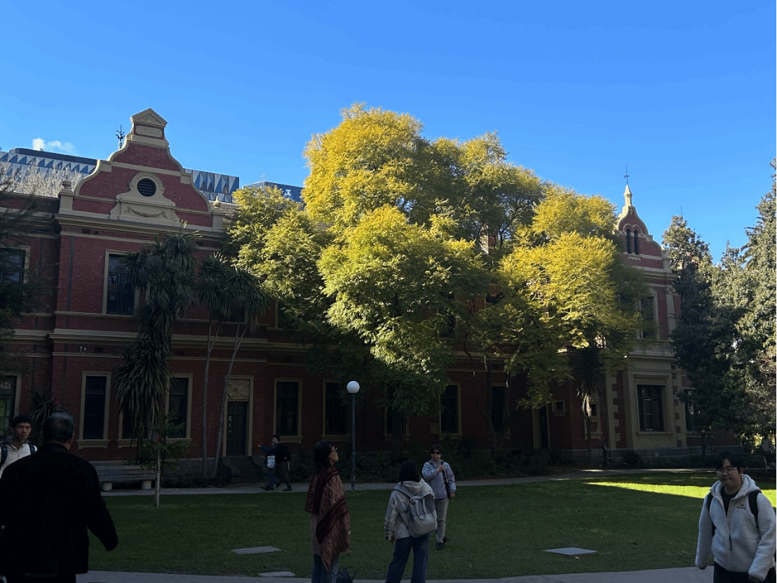 上午,实习队首站走访了墨尔本大学。这所始建于1853年的高校是澳大利亚最具声望的研究型大学之一,在2025年QS世界大学排名中位列全球第13位。参访过程中,师生们重点考察了校园内的历史建筑群,了解其空间布局与风格演变,实地感受高校文化与城市发展在地理空间上的交织联系。