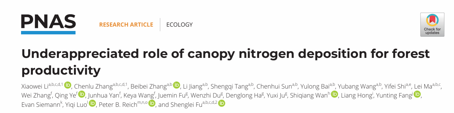 院刊》(PNAS)在线发表了河南大学地理科学与工程学部傅声雷教授团队题为Underappreciated role of canopy nitrogen deposition for forest productivity的最新研究成果。该研究依托河南大别山森林生态系统国家野外科学观测研究站,通过一项长达十年的大规模野外控制实验,首次系统量化了“冠层氮沉降”在提升森林生产力和碳固存中的关键作用,解决了该领域长达数十年的科学争议,为准确评估全球森林碳汇潜力、完善气候变化模型、服务“碳中和”战略目标提供了重要的科学依据。