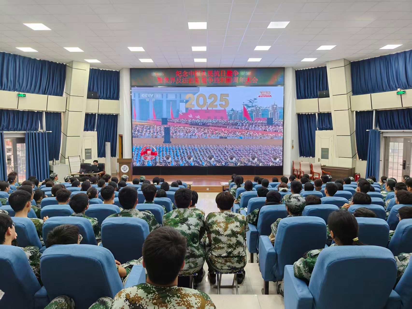 9月3日,纪念中国人民抗日战争暨世界反法西斯战争胜利80周年大会在北京天安门广场隆重举行。为深切缅怀革命先烈,弘扬伟大抗战精神,激发我部2025级本科新生的爱国热情和民族自豪感,当天上午,我部组织2025级全体本科新生于金明校区景兰报告厅观看九三阅兵仪式直播,共同见证这一承载着民族记忆与时代强音的庄严盛典。