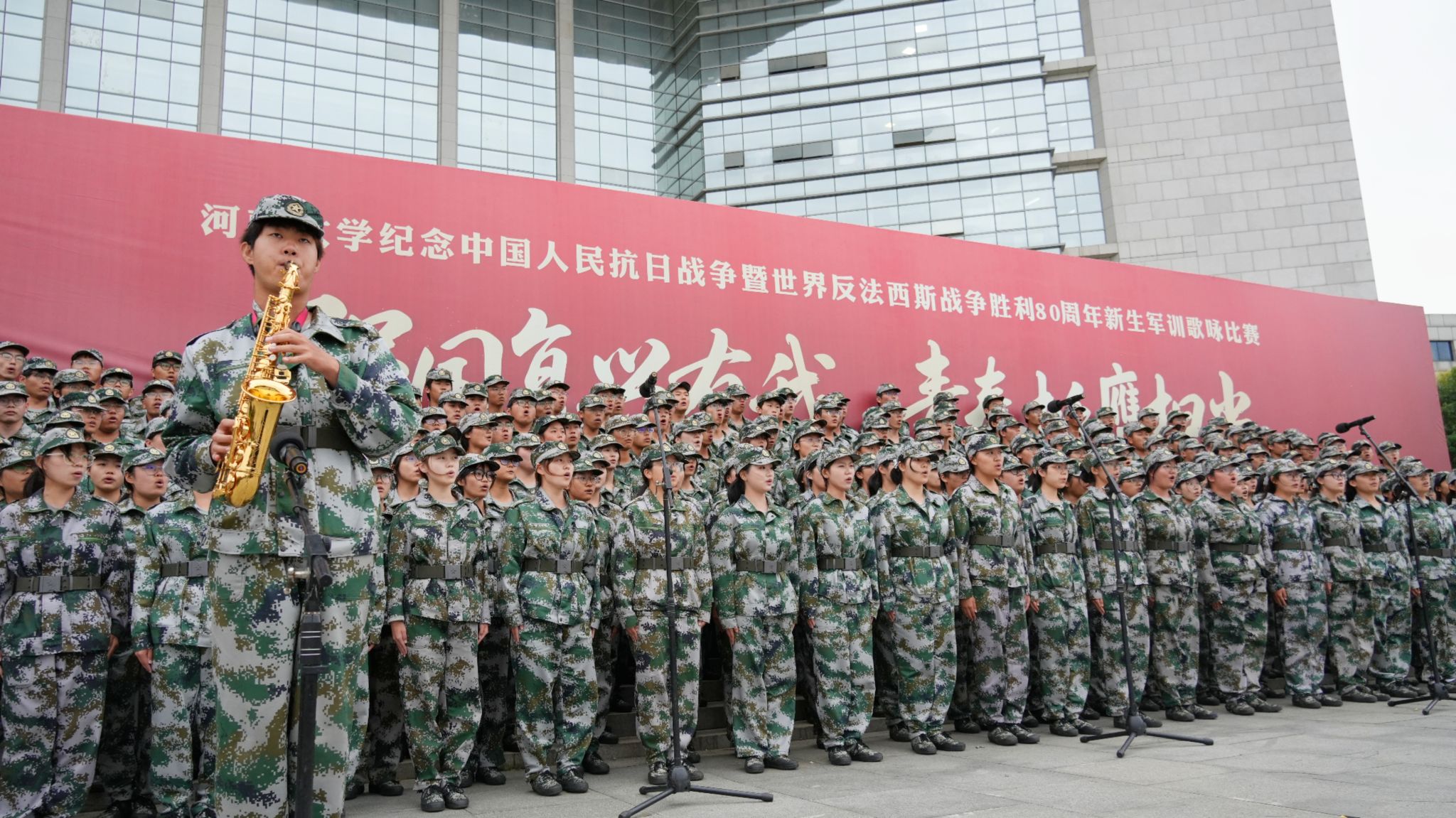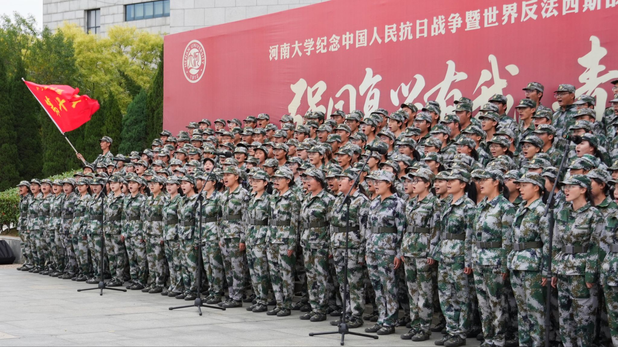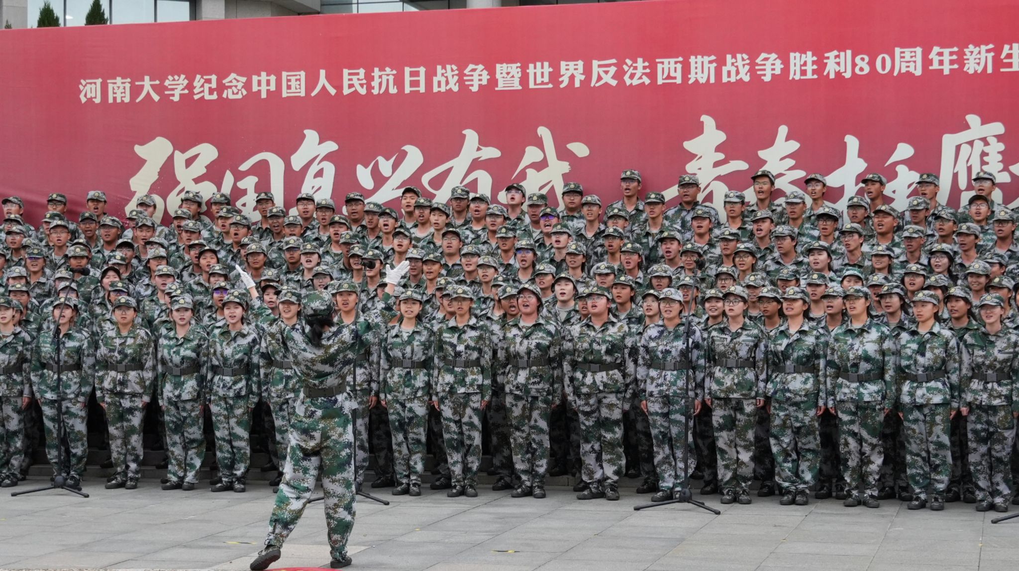 为缅怀革命先烈,传承红色基因,增强学生的民族自信心与自豪感,9月17日下午,河南大学纪念中国人民抗日战争暨世界反法西斯战争胜利80周年新生军训歌咏比赛分别于金明校区图书馆前明德广场、明伦校区东操场、郑州龙子湖校区体育场隆重举行。本次歌咏比赛主题为“强国复兴有我,青春挺膺担当”。我部第二十五连荣获此次金明校区歌咏比赛一等奖。
