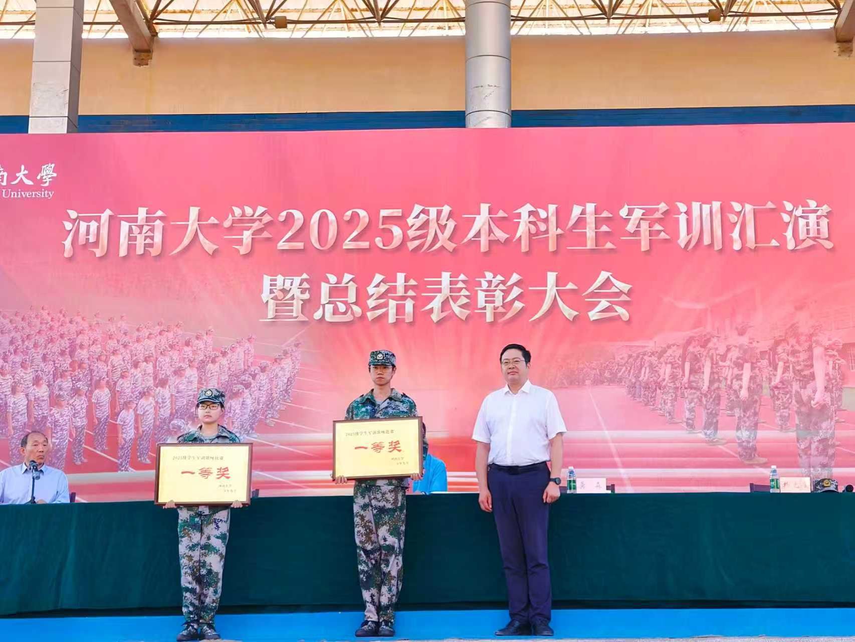晴空铺展碧色,迷彩绽放华光。为检验2025级新生军训成果,9月20日下午,河南大学2025级本科生军训汇演暨总结表彰大会在开封明伦校区、金明校区和郑州龙子湖校区各体育场举行。我部第二十五连荣获2025级学生军训队列会操二等奖,为学部再添荣光。