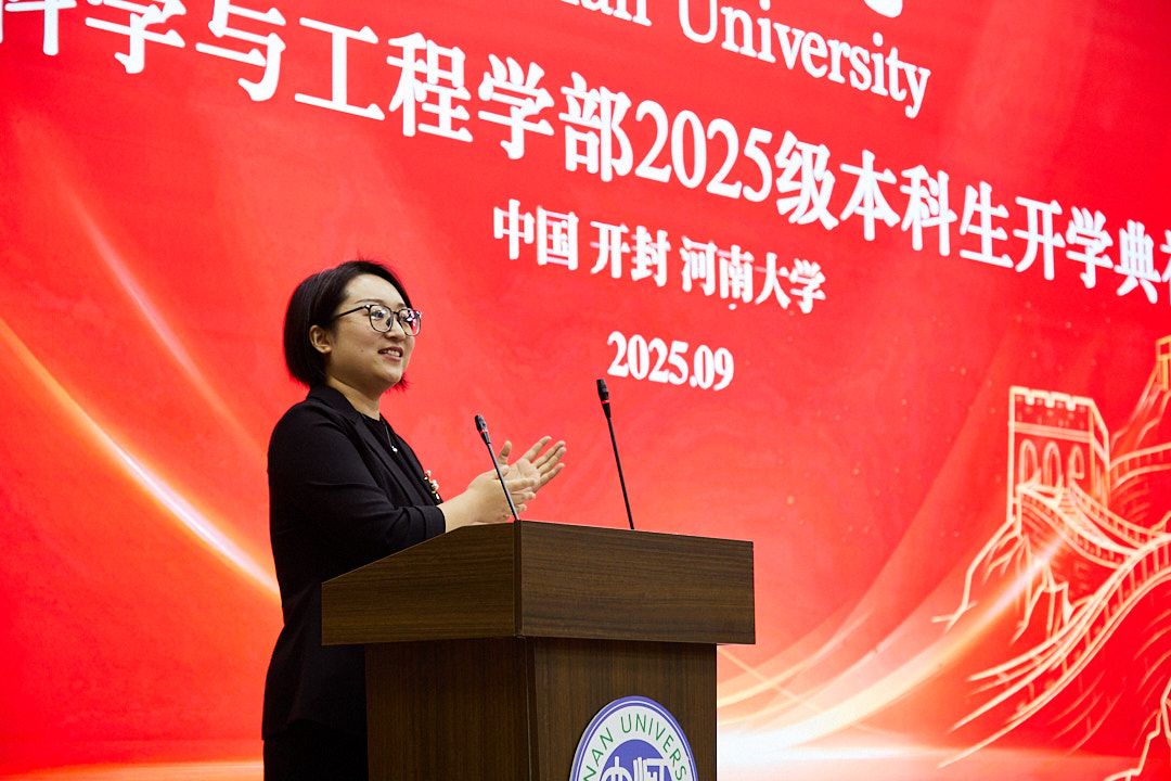 区域与城市科学系系主任翟彬作为教师代表发言。她对地理学科属性作出阐述,明确其为“观察万物、解读地球、改造世界”的综合性学科,并介绍了新生未来四年的学习实践方向。发言最后,她勉励新生要心怀对自然的敬畏与探索热情,锤炼思考协作能力、勇对挫折,恪守“明德新民,止于至善”校训,既练就过硬专业本领,又涵养家国情怀,用地理智慧守护绿水青山,以工程担当建设美好家园。