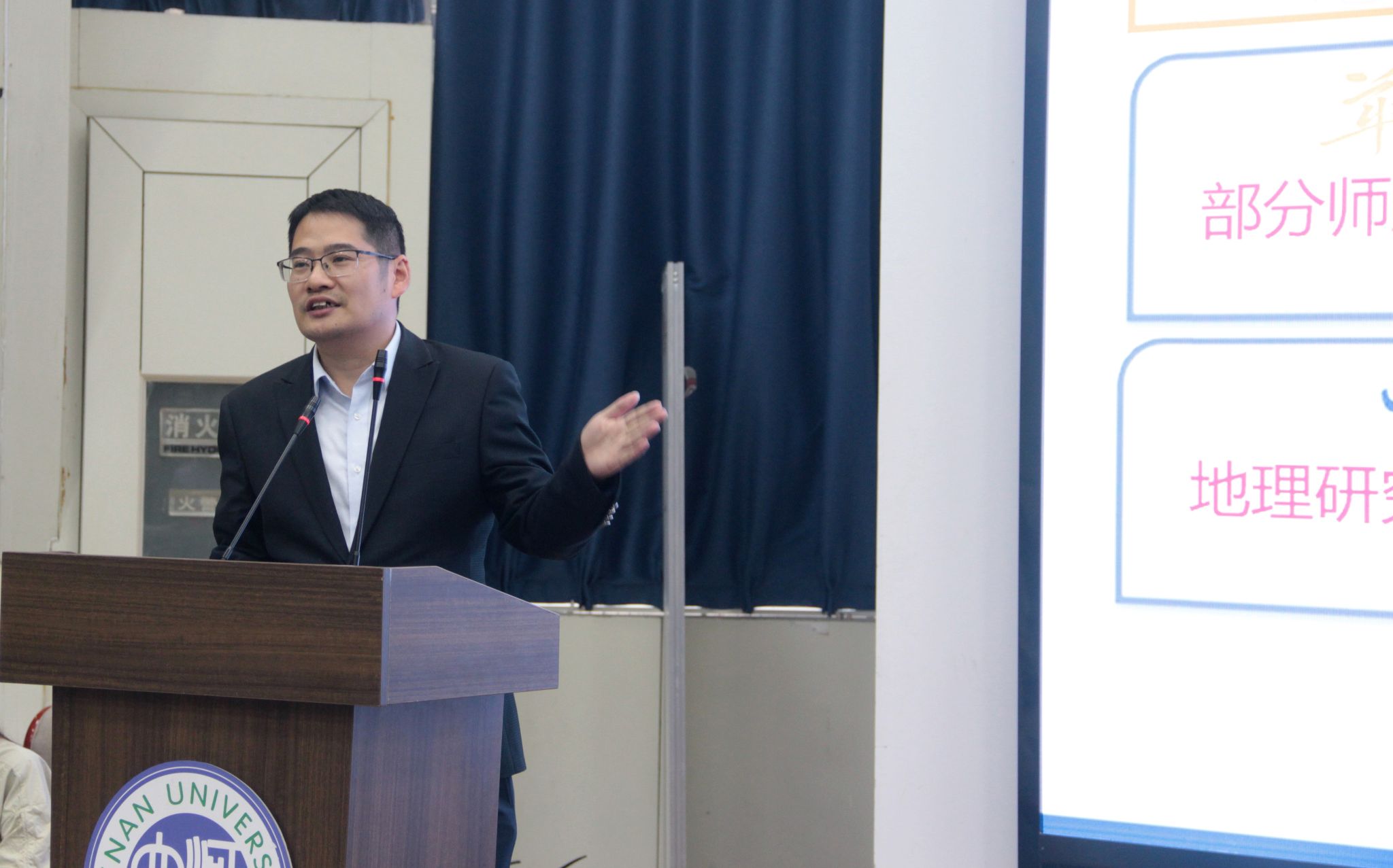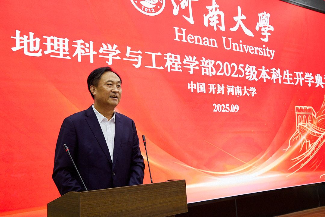 刘彦随代表学校和学部致辞。首先,他回顾了河南大学地理学科的百年积淀,从1923年地学创建至今,一代代地理人深耕不辍、奋发图强,形成了求真务实、开拓创新的专业文化。其次,详细介绍了地理学部由“三院一室一中心”组成的基本架构和聚焦地理科学与工程交叉融合的学科定位,以及地理学部建设“135规划”、地理学科发展“36X体系”和地理科学+技术+工程+实践(STEP)四维融通创新模式;梳理总结了地理学部自成立以来在深化改革、学科建设、科研创新、人才培养等方面取得的系列成果。最后强调指出,学部拥有空间基准全国重点实验室、河南大别山森林生态系统国家野外科学观测研究站、国家级实验教学示范中心等国家级平台条件,地理学科发展要立足平台优势和地域特点,聚焦综合地理学与地理工程前沿,突出时空大数据和生态地理学、气候地理学、地理教育学等专业特色,聚力黄河流域、生态文明、乡村振兴、都市圈战略和人地系统科学、人类地层学等领域科技攻关,奋勇争先、提质进位,努力实现学科筑峰和一流建设的“双突破”。同时,他希望广大新生要胸怀“国之大者”、树立远大目标,将个人理想融入国家发展大局、民族复兴大业;要坚定信心,勇于创新,在全球化、信息化和气候变化的时代背景下,致力于破解复杂人地系统耦合与可持续发展难题;要知行合一,重视实践,尽快融入学部的“系所一体化”培养体系,在深入实验室、研究基地锤炼本领,努力成长为具有家国情怀、国际视野、科学精神和实践能力的现代地理人才。