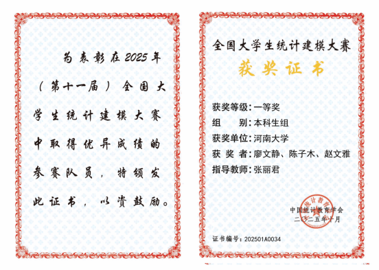 本届比赛竞争激烈,共有来自全国高校的891支队伍晋级全国赛,其中包括本科生组588支、研究生组303支。我部本科生廖文静、陈子木、赵文雅共同完成的作品《借用规模还是集聚阴影?——基于机器学习方法的城市网络联系对减污降碳效应影响分析》,凭借鲜明的地理学视角与扎实的数据建模能力,荣获本科生组全国一等奖。