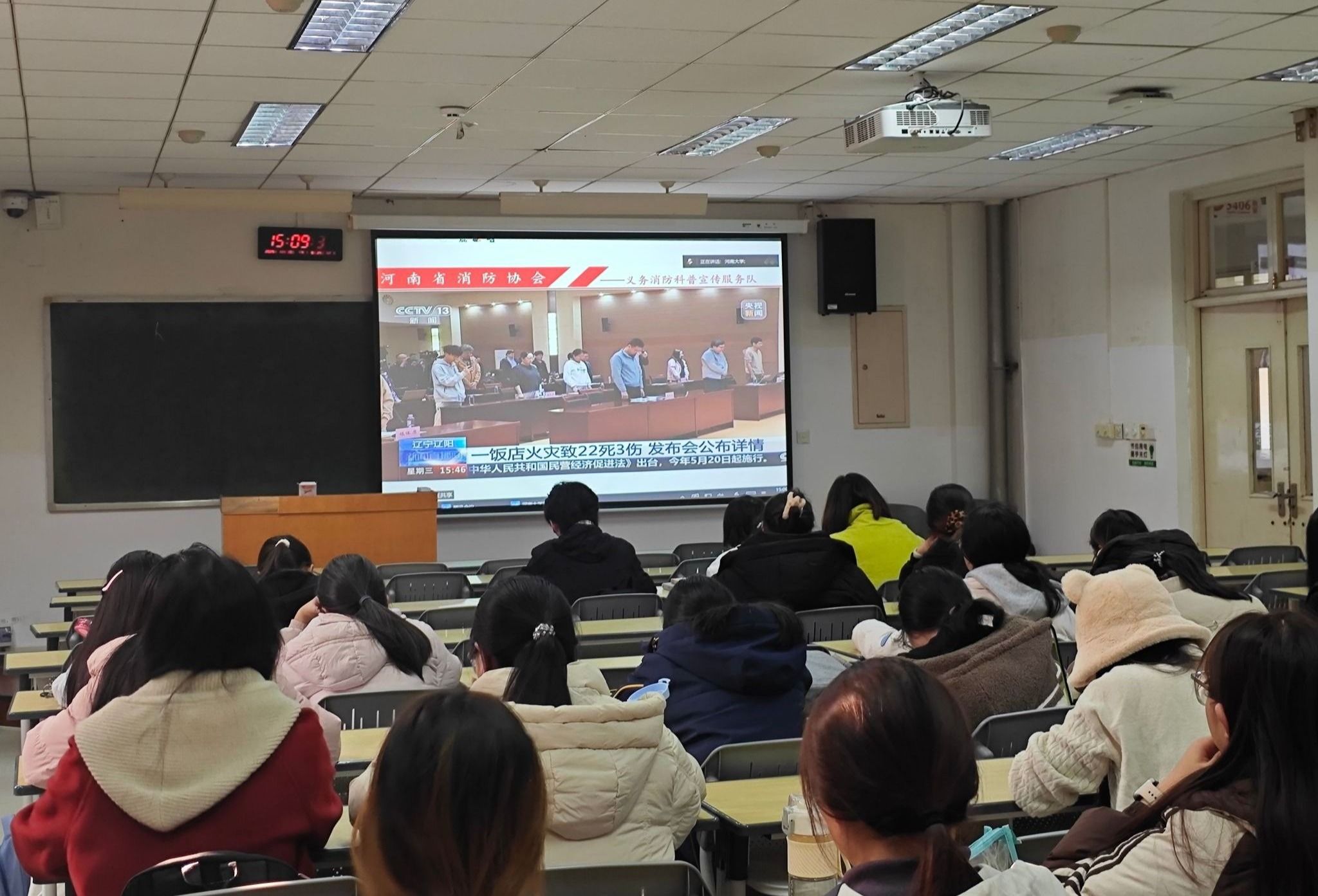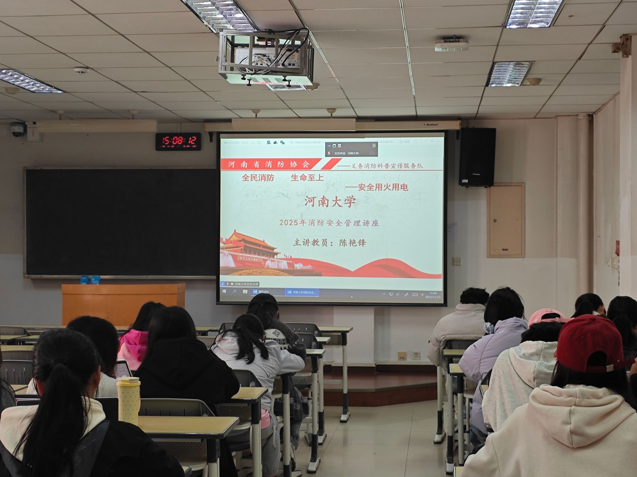为强化我部学生的安全认知与责任意识,明晰高校风险与管理方向,推动责任落地与规范管理,11月13日下午,我部于金明校区综合教学楼组织2022级、2023级、2024级与2025级学生集中观看“全民消防,生命至上——安全用火用电”主题消防安全管理讲座。