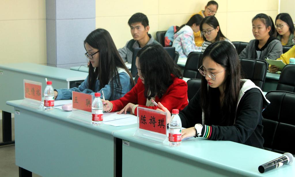 英语专业王聃、陈旖琪、赵倩格三名同学担任评委。