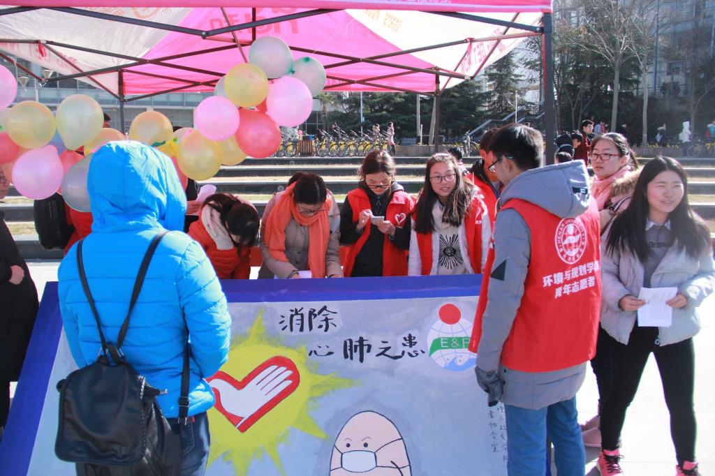 本次志愿服务系列活动包括文明劝导、文明我先行、雾霾知识宣传、环保知识问答、环保工艺品展示等环节,使师生了解雾霾的危害,传递环保正能量。