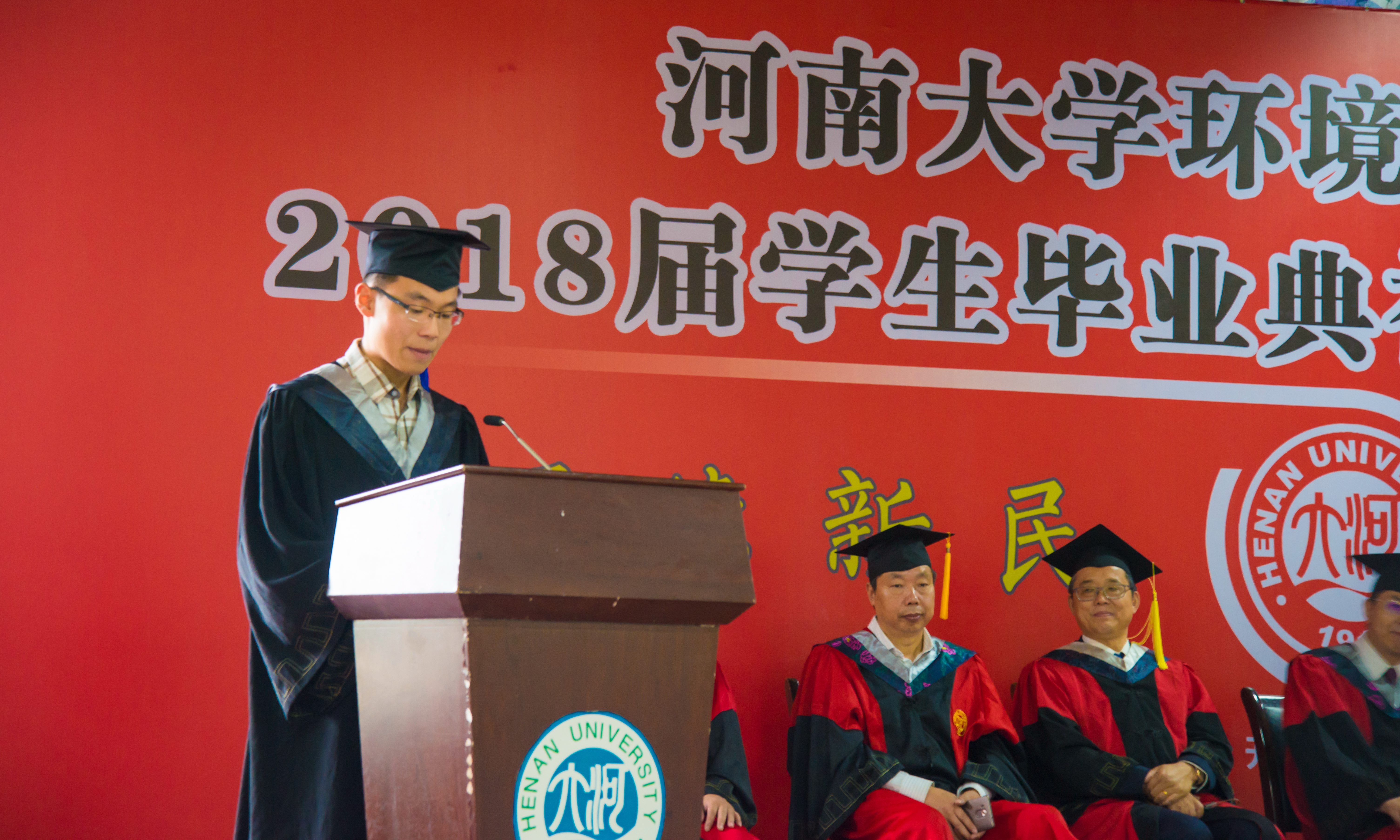 和各位老师表达衷心的感谢,他在演讲中重温大学四年的点点滴滴,感谢老师们的辛勤栽培,一定会谨记老师们的谆谆教诲,成为河大精神财富和优良传统的继承者与传递者。2017级易思岐作为在校生代表为学长学姐们送上祝福,感谢他们无微不至的关怀和细心指导,祝愿他们早日实现自己的人生理想,在新的道路上一帆风顺。