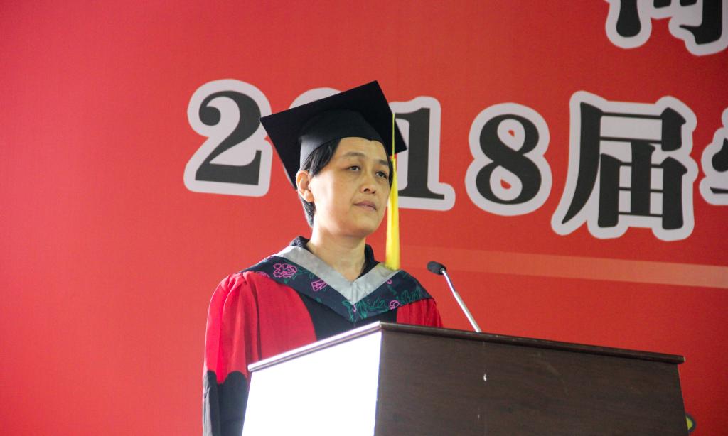 向圆满完成学业的全体同学表示最热烈的祝贺,她希望同学们毕业之后牢记母校的嘱托、发扬母校的学风和传统,担负起报效祖国服务人民、不断学习探求真知、追求卓越追求完美的责任。并饱含深情地给同学们提出三点嘱托:一要坚守梦想、二要担起责任、三要面对现实。最后她祝毕业生前程似锦、一生平安幸福。