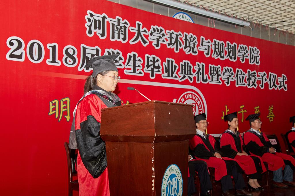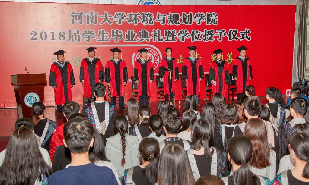 在雄壮的国歌声后,副院长翟秋敏宣读《河南大学关于授予普通本科毕业生学士学位的决定》,院长秦耀辰为181名毕业生援正流苏,颁发学位证书,并一一合影留念。