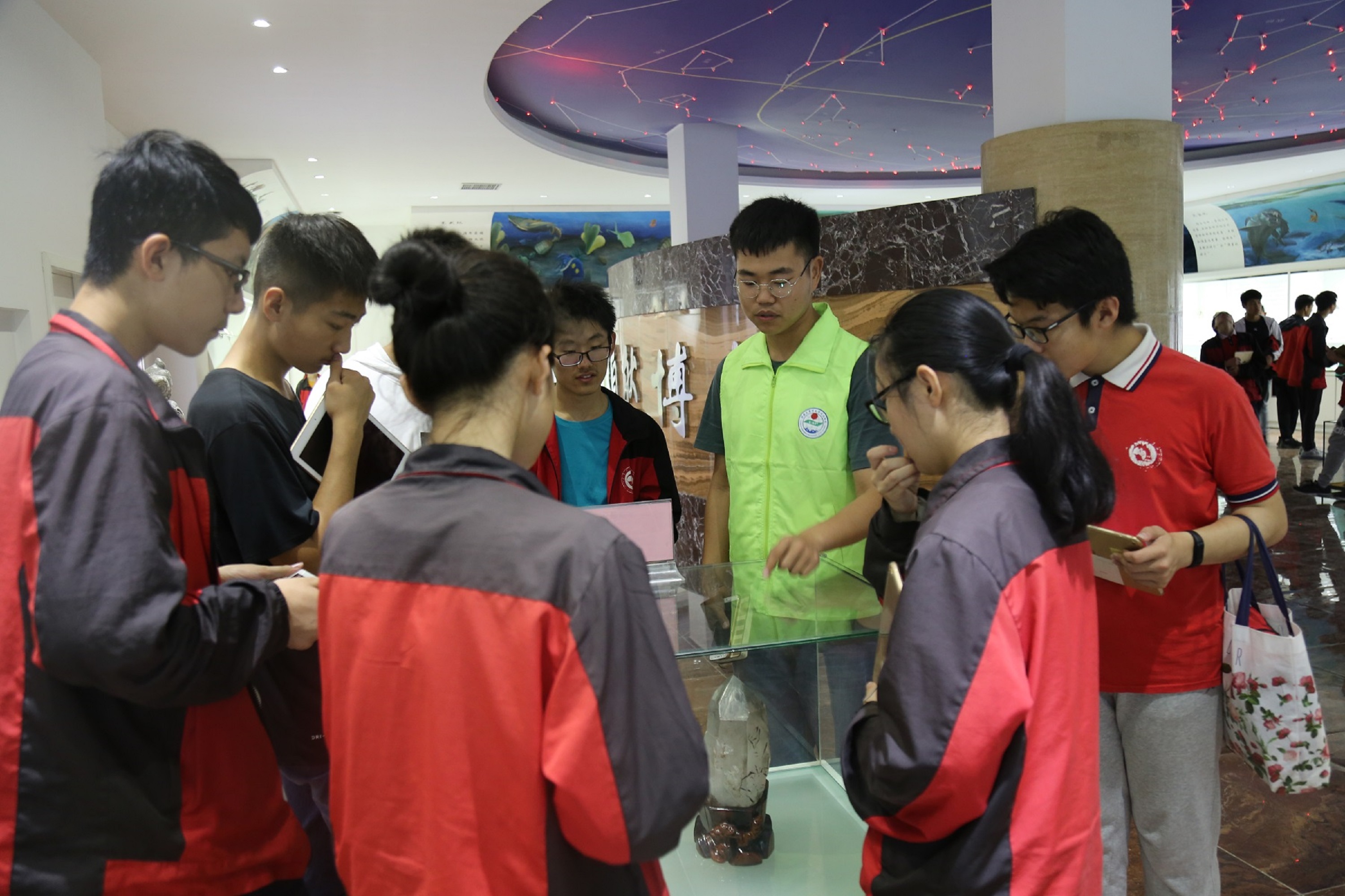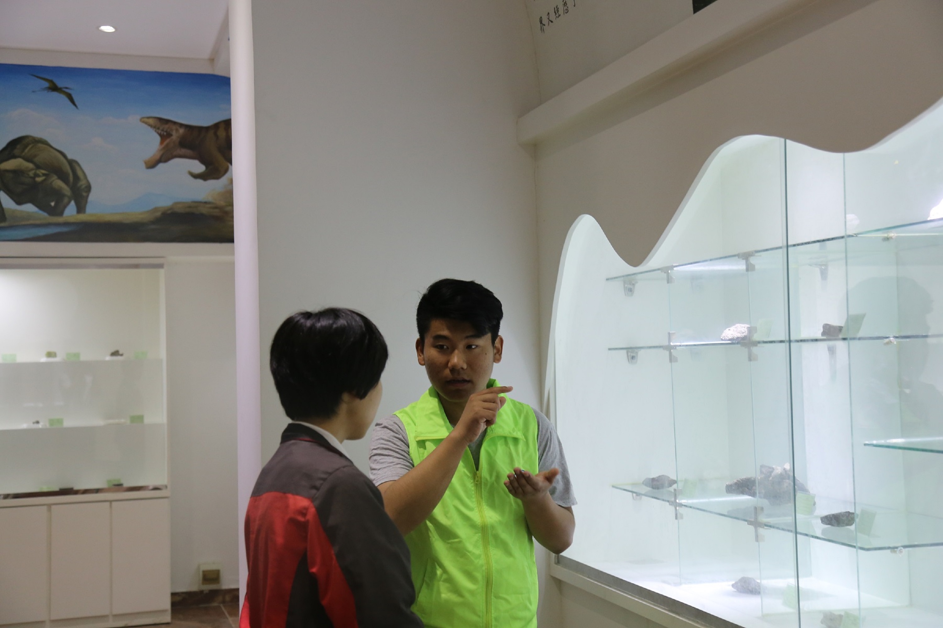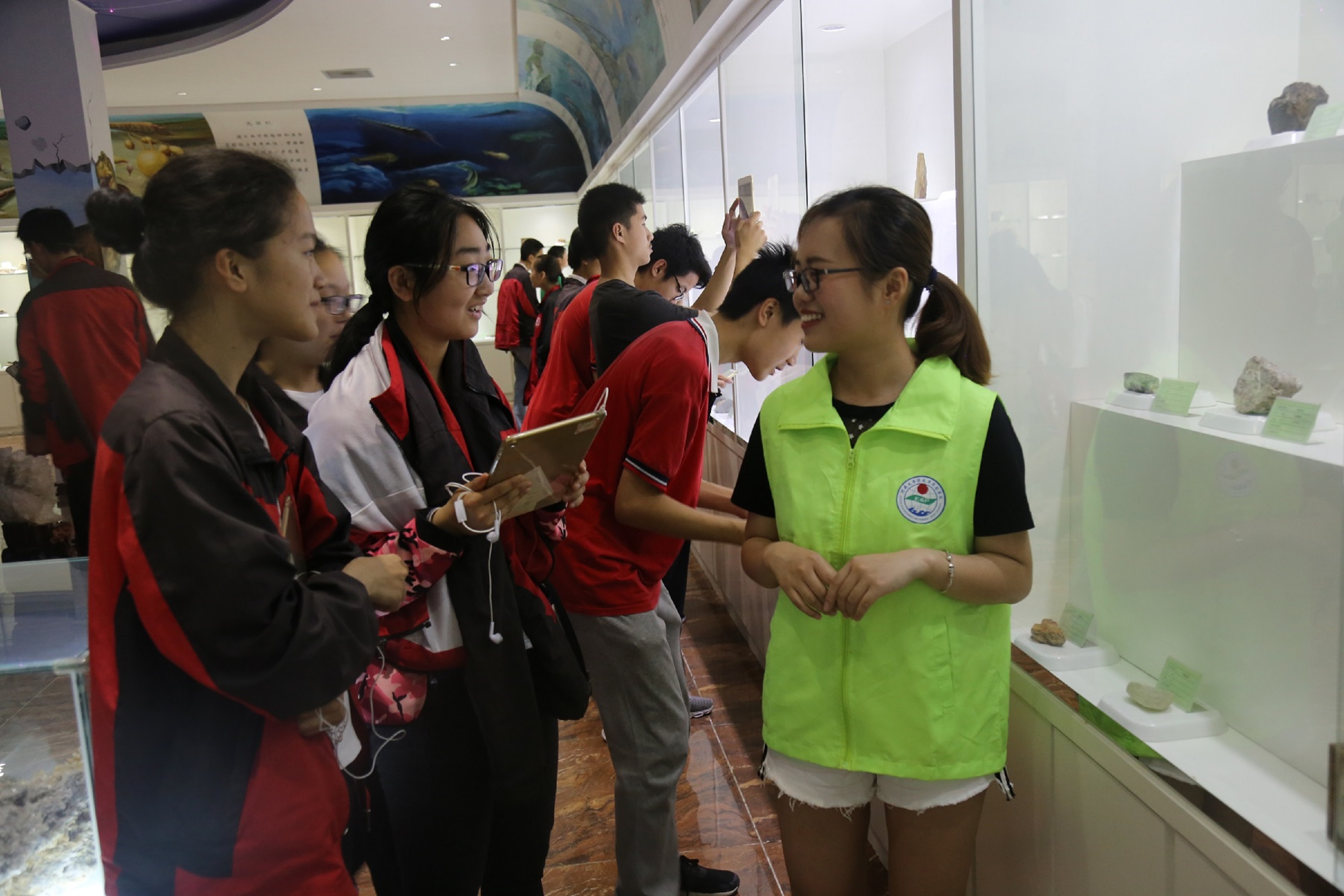 5月31日上午,我院接待了河南大学附属中学38名初三学子到东英自然博物馆参观学习。2016级地学实验班四位志愿者为参观者进行讲解,让中学生们对各类岩石、化石以及地球演化历程有了进一步了解。