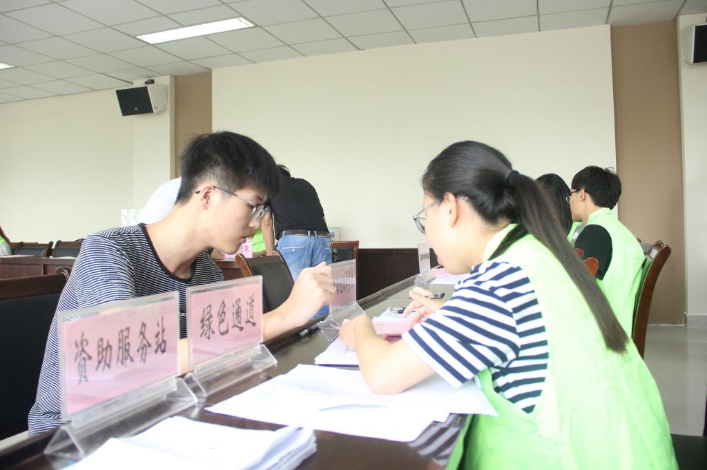我院设立了资助服务站,为家庭经济困难学生办理“绿色通道”,向他们讲解相关资助政策。我院志愿者们精诚合作,分工明确,迎新工作顺利开展。