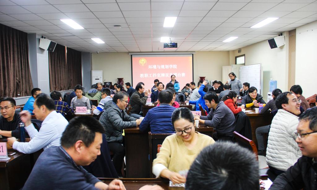 分别开展了扑克牌双升比赛和教职工趣味运动会,共6支工会小组100余名教师参赛。