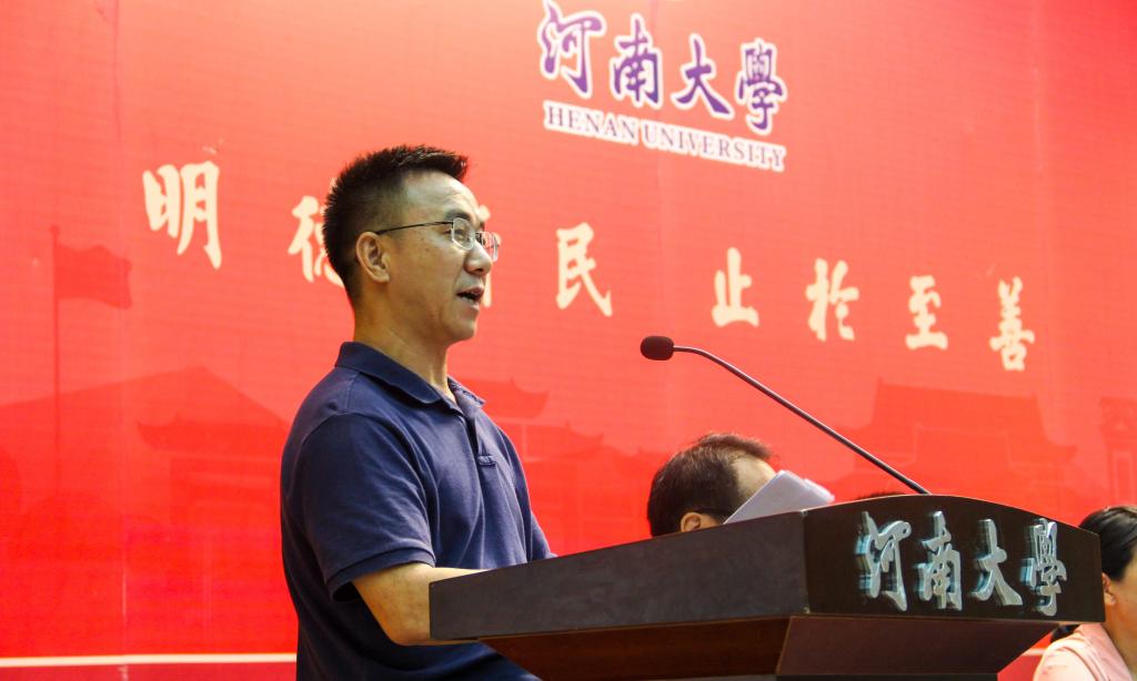 河南大学原副校长王发曾教授以从空间轴、时间轴、人文轴三个方面将河南大学悠久的历史、跌宕起伏的发展历程娓娓道来,让在座师生感受到了的荣誉感和使命感。并从成长的概念、周期与阶段和人格的养成两方面对寄予新生厚望。