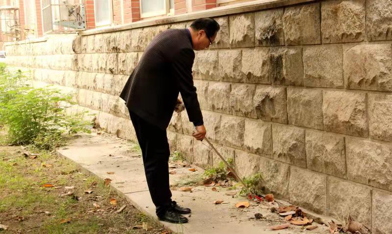 教职工们相互协作,清洁道路垃圾、捡拾草丛杂物,对球探足球比分