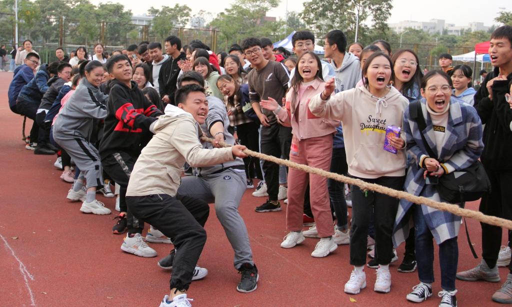 伴着温暖的骄阳,运动健儿个个热情高涨,活力四射。跳远比赛的奋力一跃,实心球项目的振臂怒抛,田径场上,运动员们你追我赶,汗水尽情挥洒。100米决赛中参赛者们用惊人的速度带给观众一场视觉盛宴,赢得观众阵阵欢呼。集体项目众星捧月、共渡难关、营地求生……这些看似简单的项目,考验着团体的合作与默契程度。最后的拔河比赛将运动会推向高潮,一声声呐喊助威,一次次往复拉锯,运动员们即使憋得满脸通红,也要拼尽全力。最终2018级地理信息科学班以总分第一夺得本次运动会团体冠军。